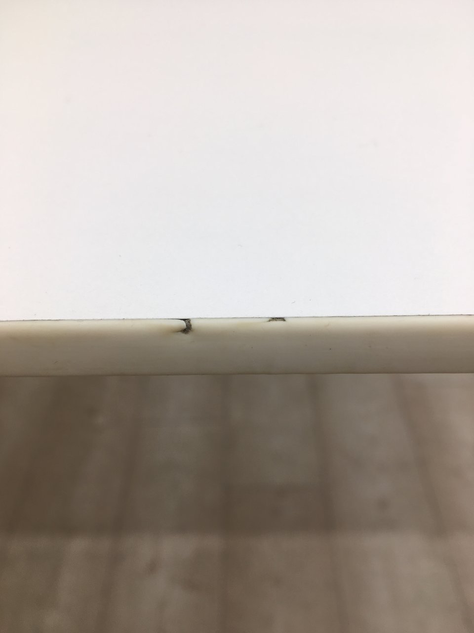 - 壊れている天板歪み、アジャスター無し、キャスター使用不可のようにそのテーブルの本来の効用を果たすための機能に不具合がある。
