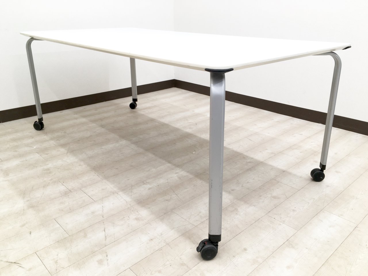 【ホワイトカラーのスタイリッシュミーティングテーブル!】■コクヨ(KOKUYO)製 アリーナシリーズ ミーティングテーブル W1500×D740㎜ ■4本脚 ■天板:ホワイト