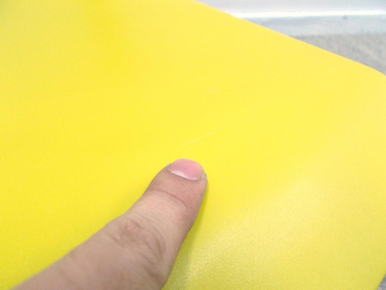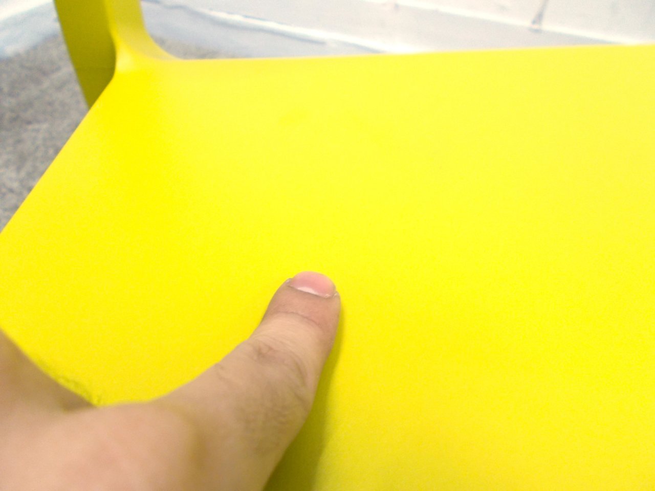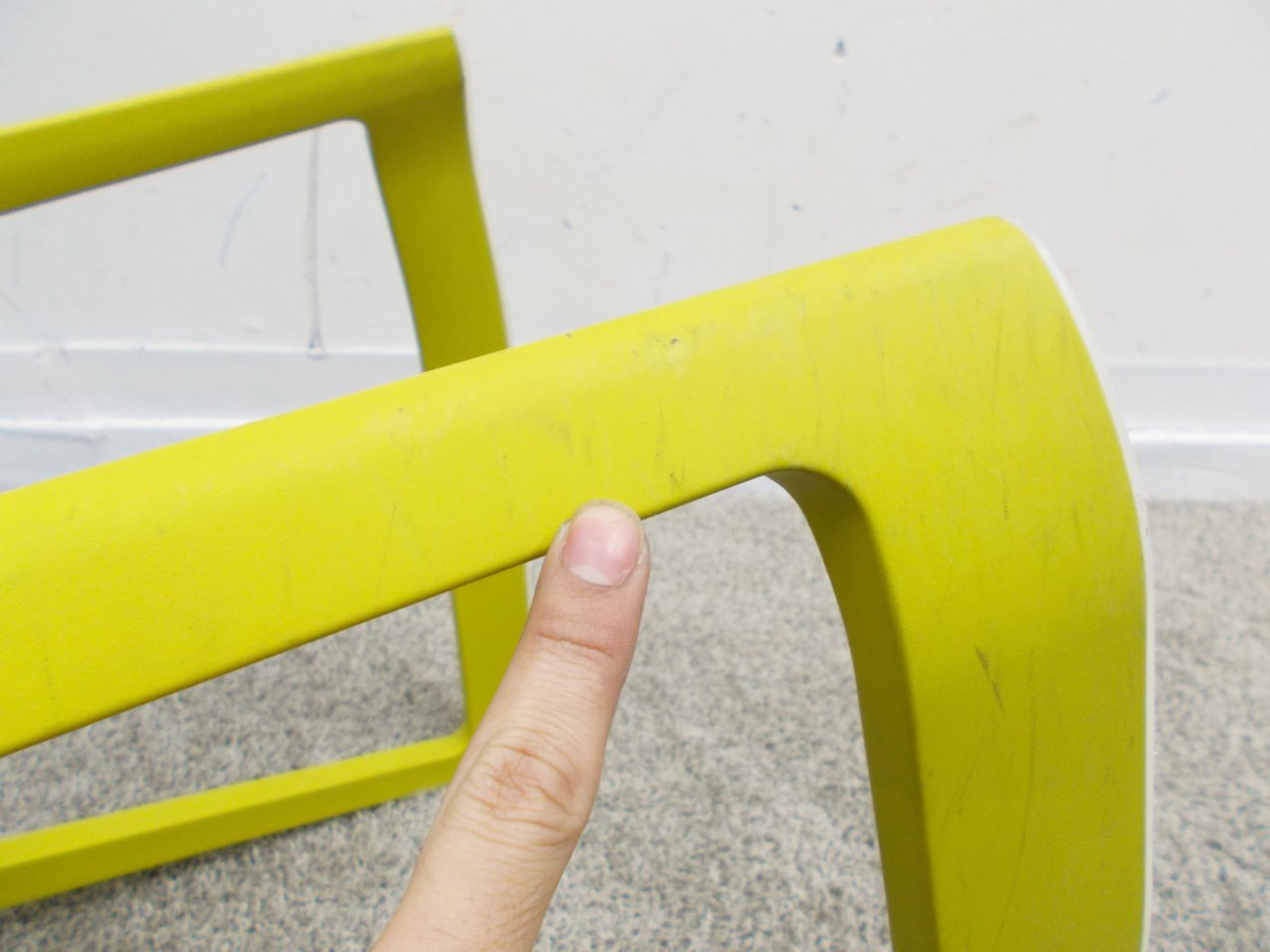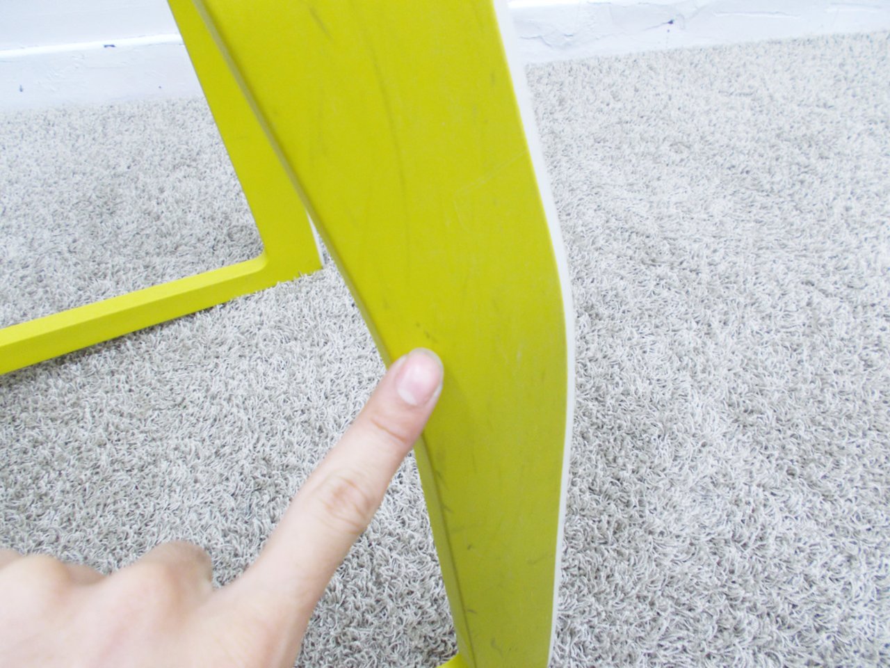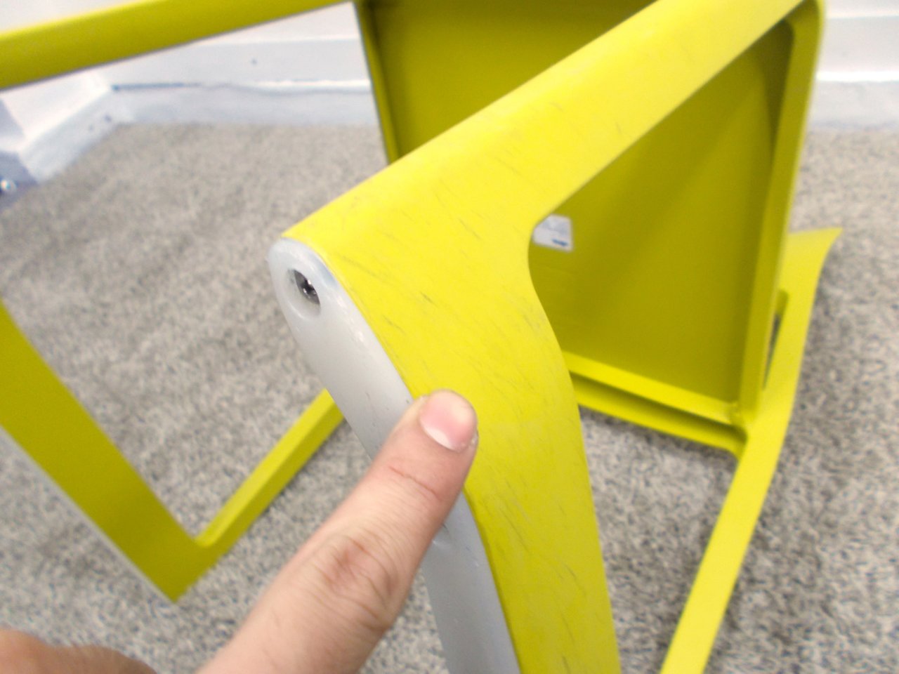 - かなり強い濃い黄ばみ・変色が商品全体にある。(例、座面・背もたれ、脚部等にある。)