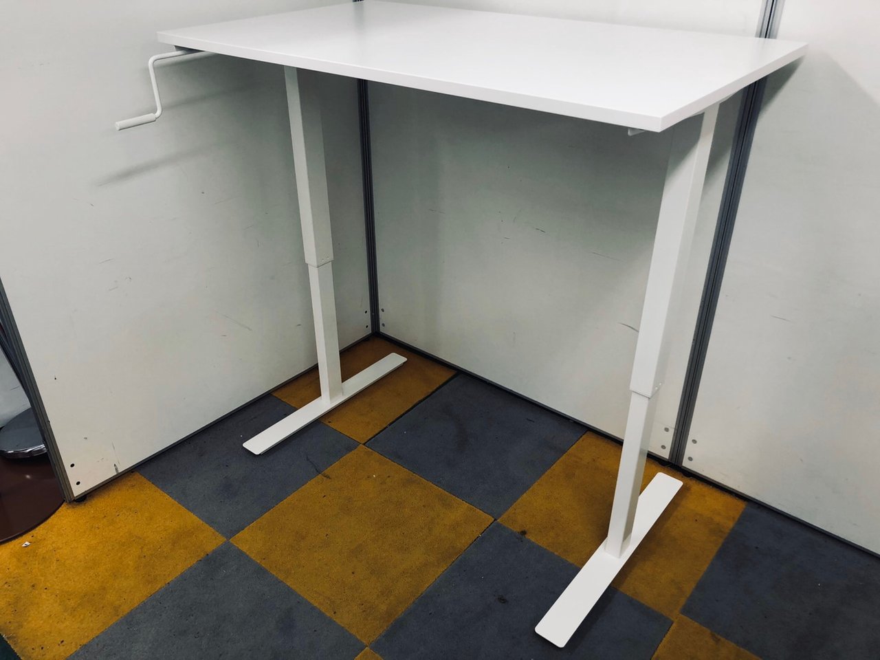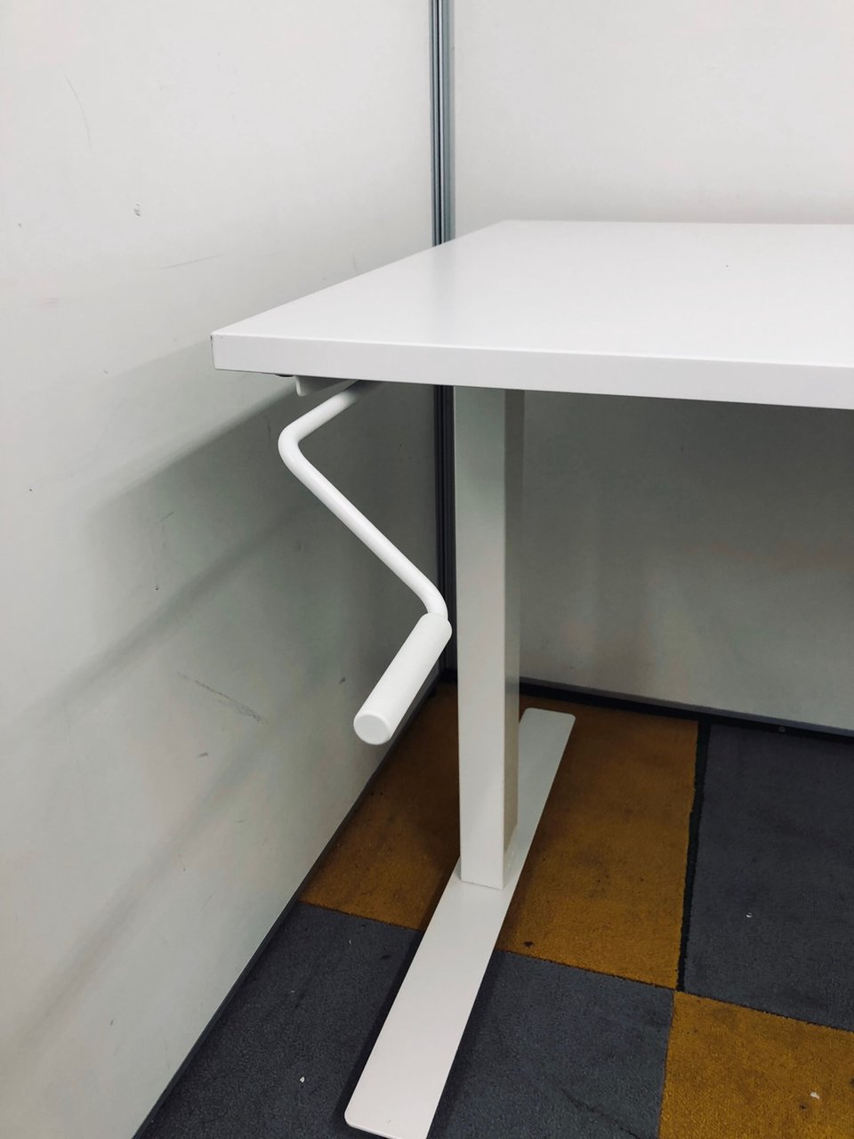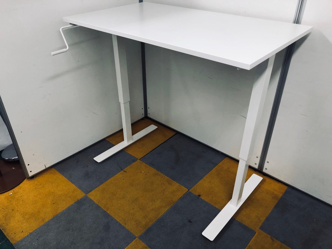【働き方改革】【上下昇降デスク】手巻きでの上下昇降ですが使いやすく、小会議や立ち仕事に役立ちます!- 品川・三田店