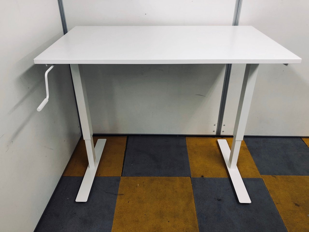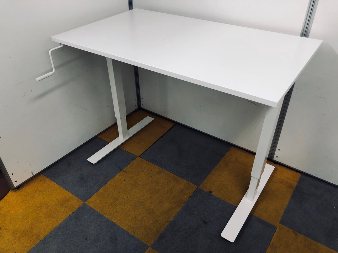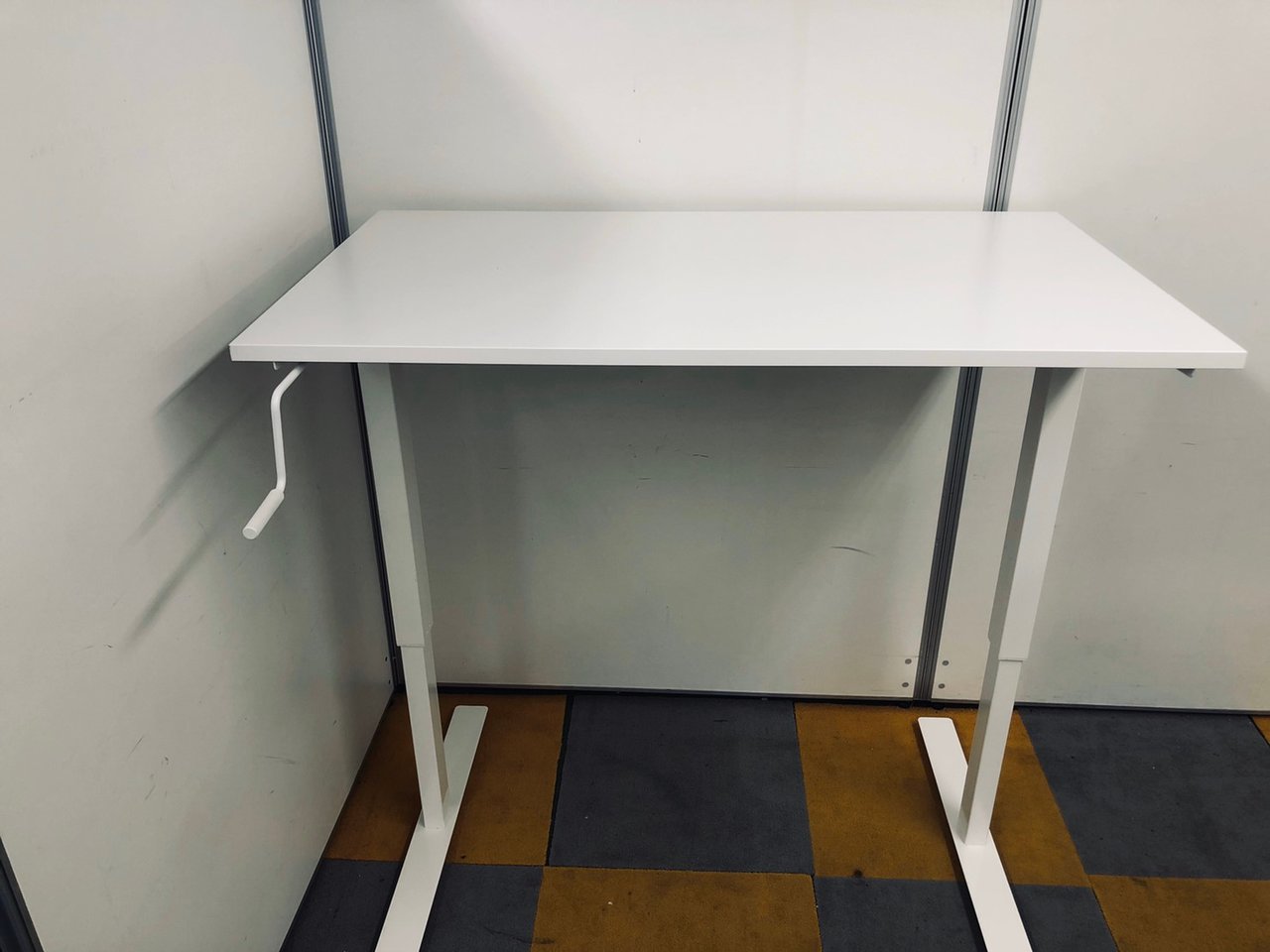 【働き方改革】【上下昇降デスク】手巻きでの上下昇降ですが使いやすく、小会議や立ち仕事に役立ちます!- 品川・三田店