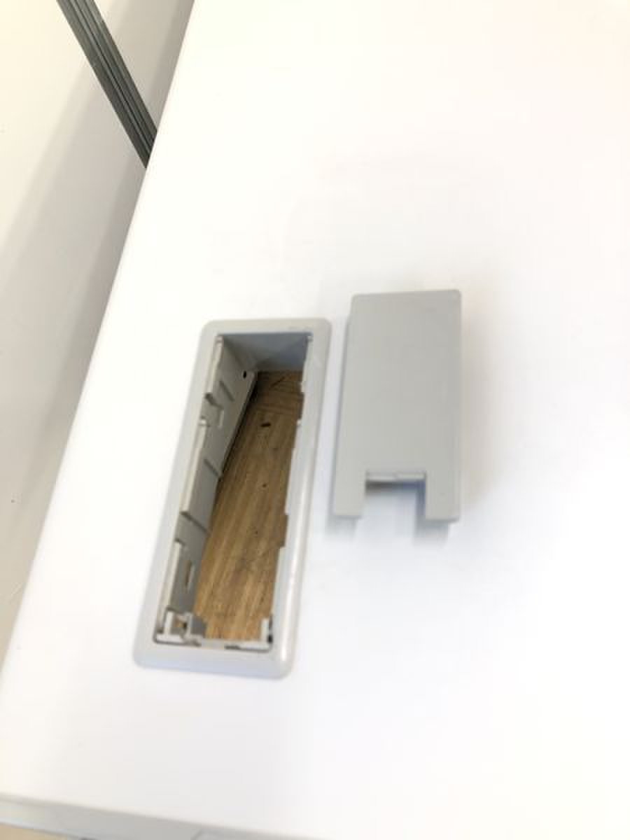 - 天板にコードホールが2ヵ所あり、レイアウト自在です。天板と幕版の間に30mmのすき間があり、対向配線も容易です。