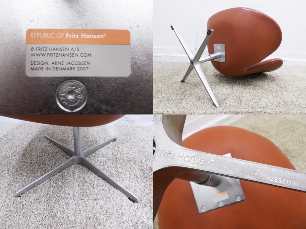 D)Fritz Hansen/フリッツハンセン スワンチェア 本革 北欧 SASロイヤルホテル- デザイナーズ家具センター