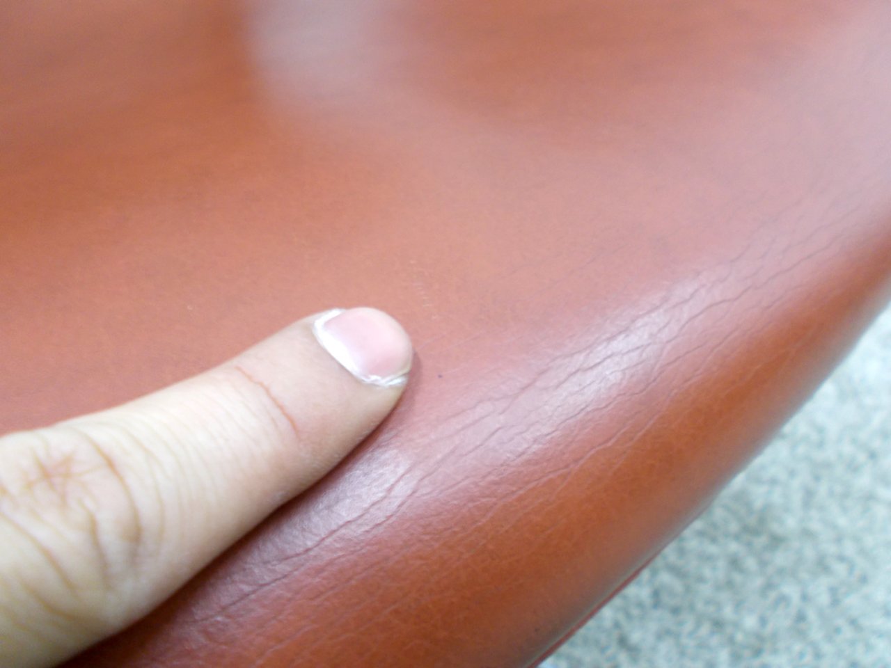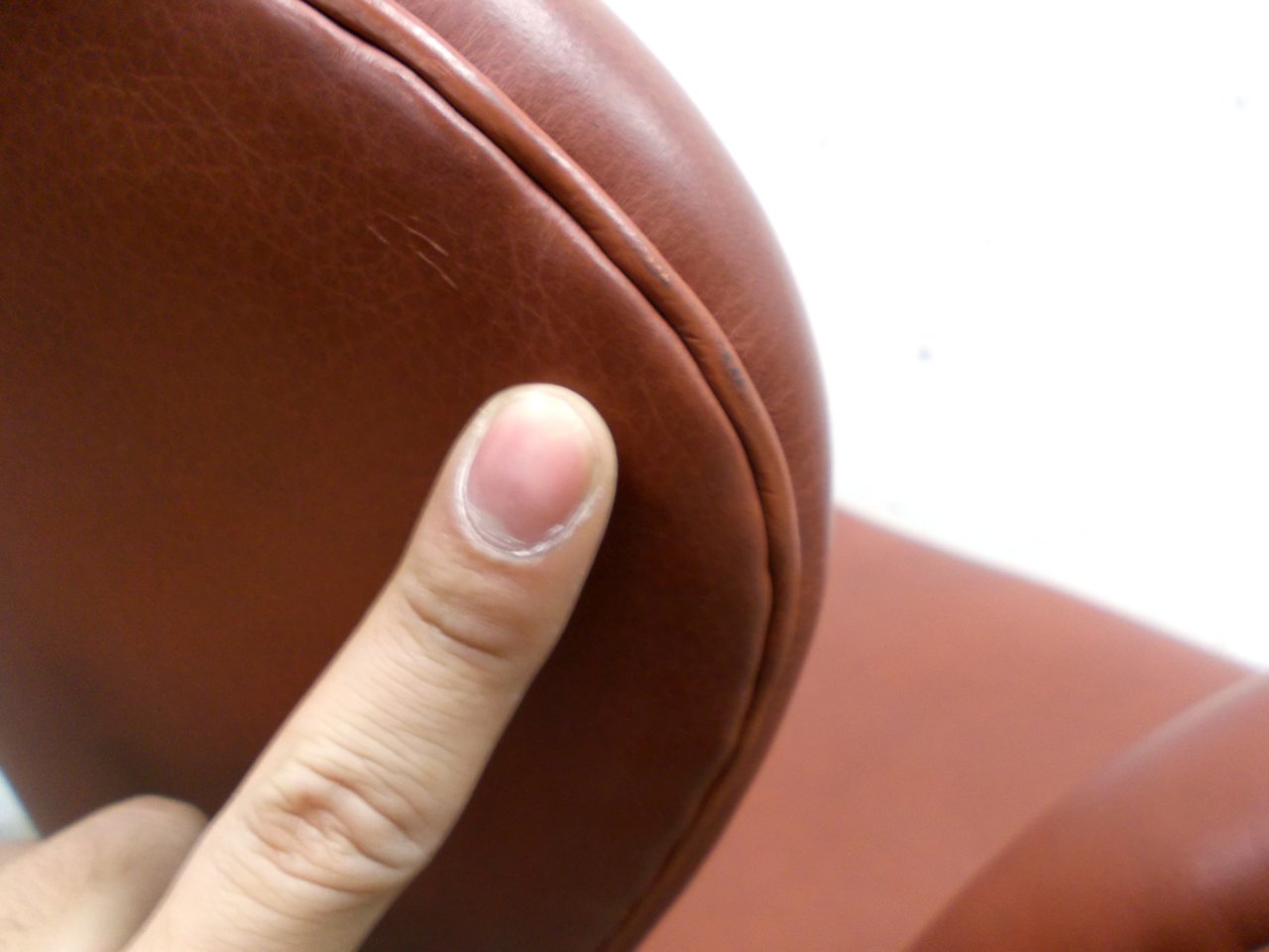 - あり黄ばみ・変色が広い範囲にうっすらある、または濃い黄ばみ・変色が一部ある。(例、座面・背もたれ、脚部等にある。)