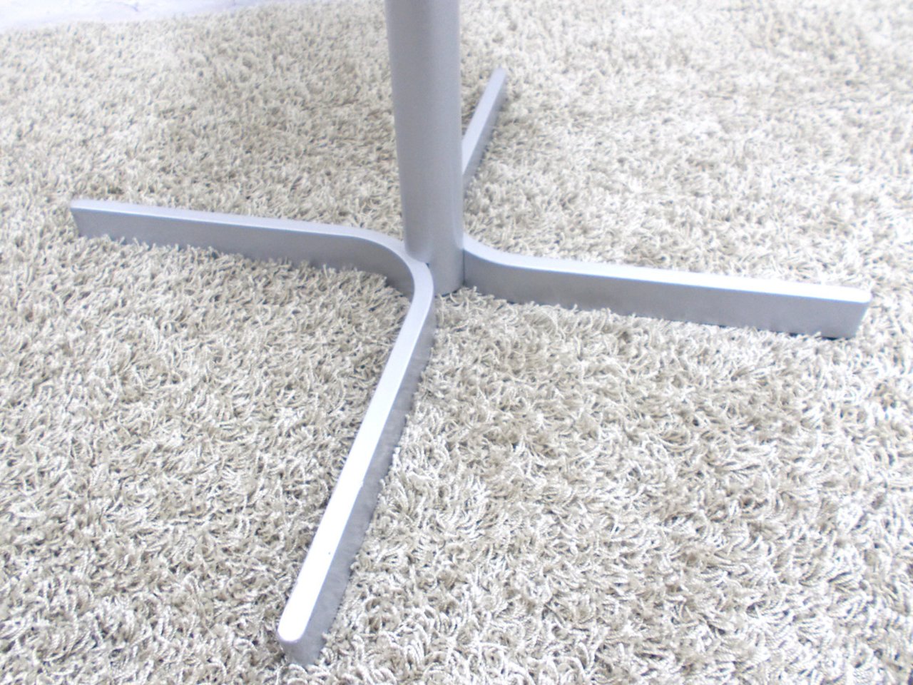 シンプルさの中に軽快さややわらかなイメージを表現したテーブルです。見る方向により違った表情を見せるベース部分は、ポールの左右にブーメラン形状のパーツを取付けた独特な構造になっており、テーブルの安定性を確保しつつ意匠的なポイントにもなっています
