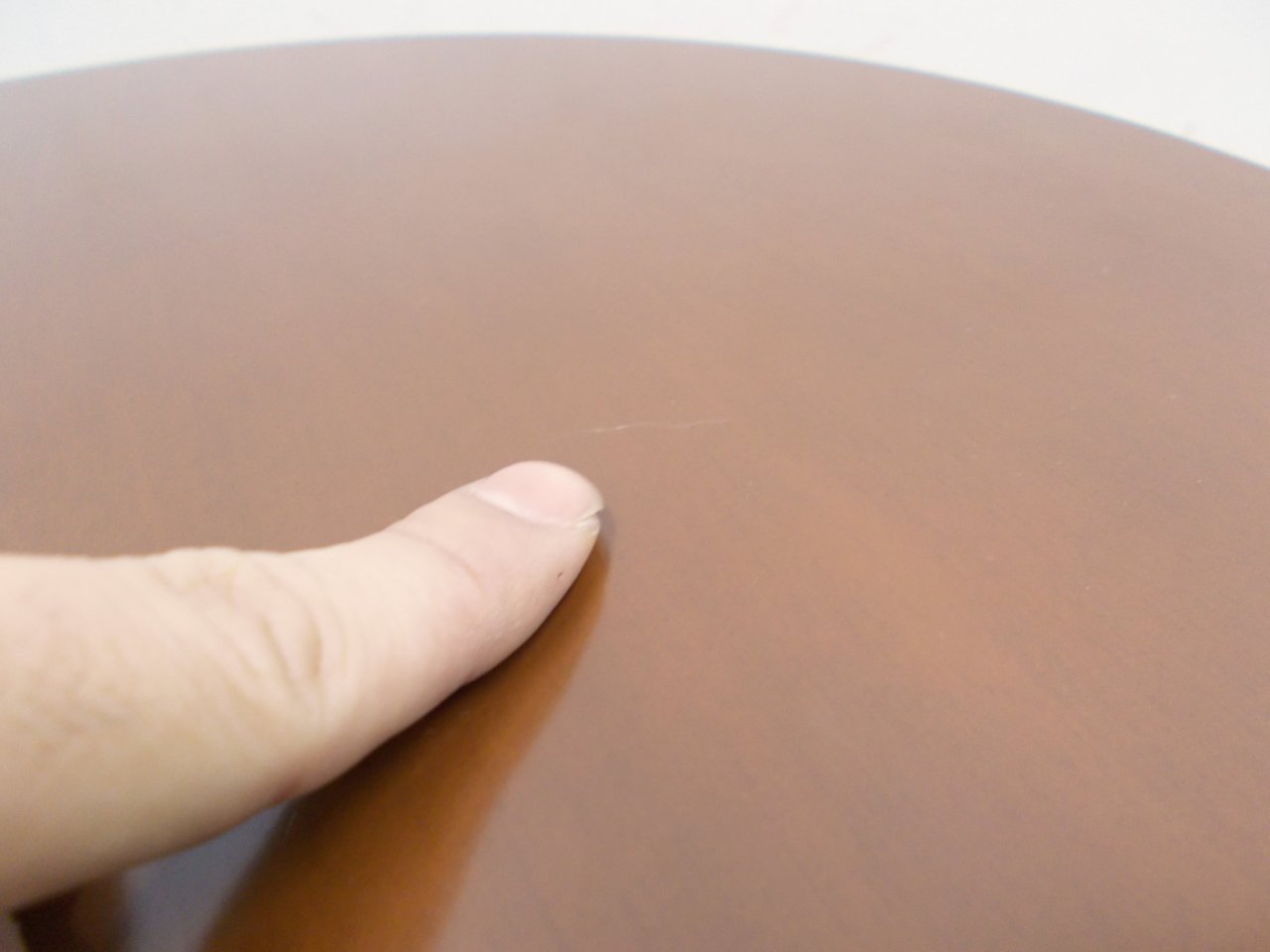 - 壊れている天板歪み、アジャスター無し、キャスター使用不可のようにそのテーブルの本来の効用を果たすための機能に不具合がある。