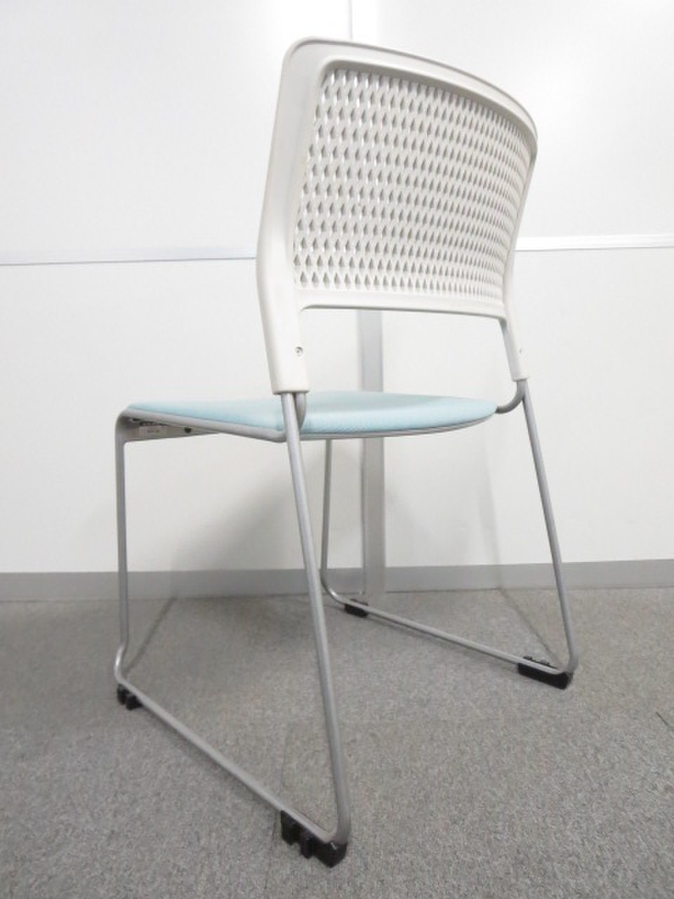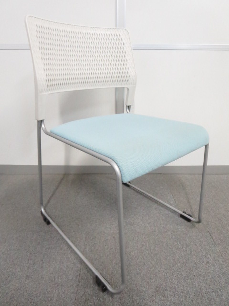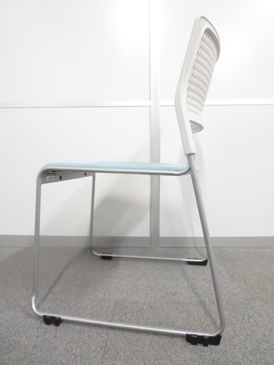 【状態を気にしなければお買い得!】■ウチダ スタッキングチェア アクアブルー【※座面多少シミ汚れあり】- 川崎店
