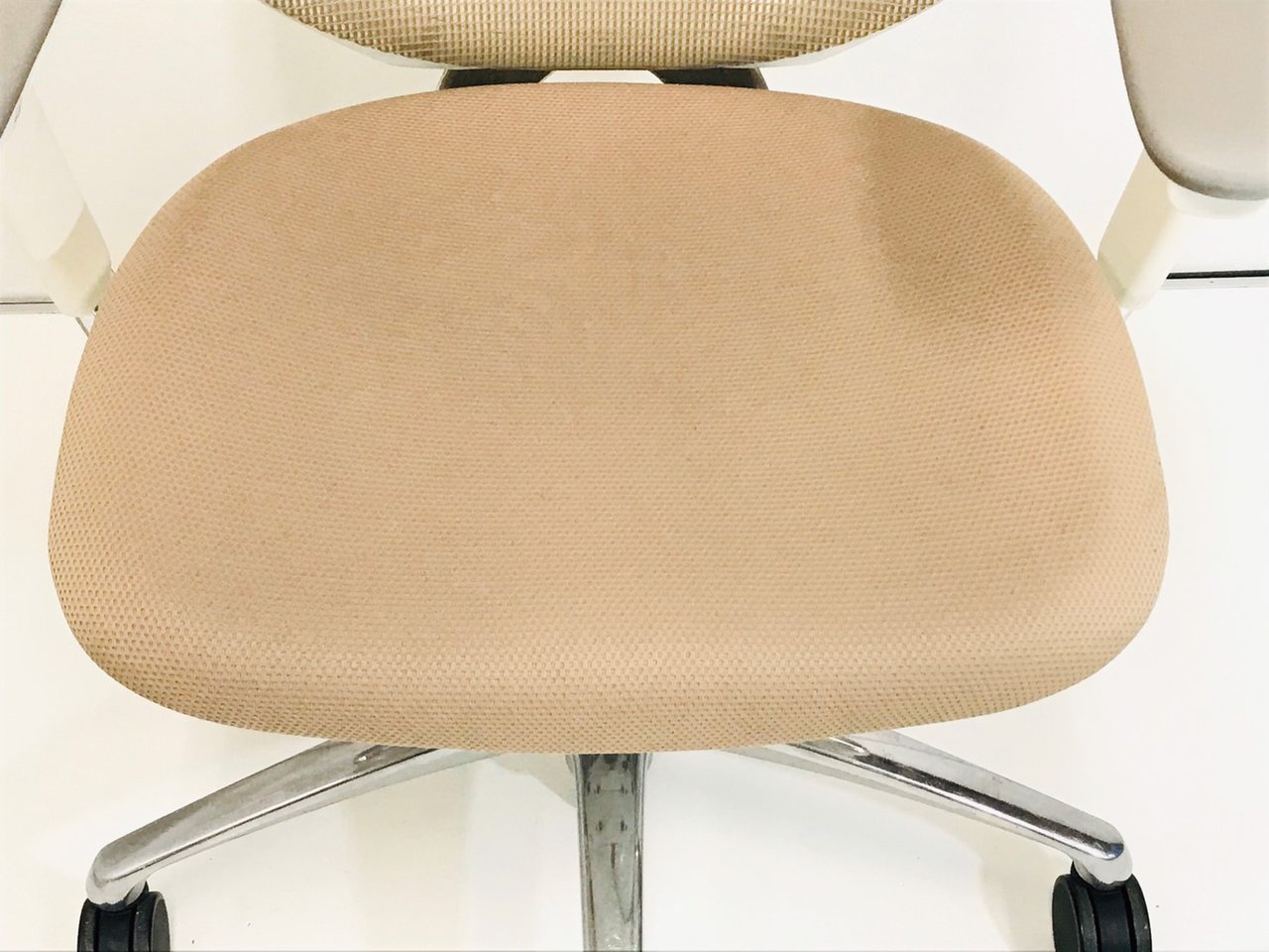 - あり黄ばみ・変色が広い範囲にうっすらある、または濃い黄ばみ・変色が一部ある。(例、座面・背もたれ、脚部等にある。)