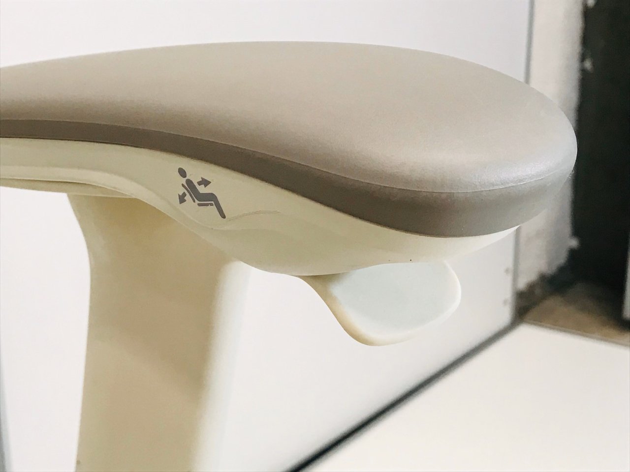 - 肘パッド部の上下(1D)、角度(2D)、前後(3D)、左右(4D)の調整が可能。可動幅は、上下100mm、内側20度、外側10度、前後40mm、左右片側25mmです。