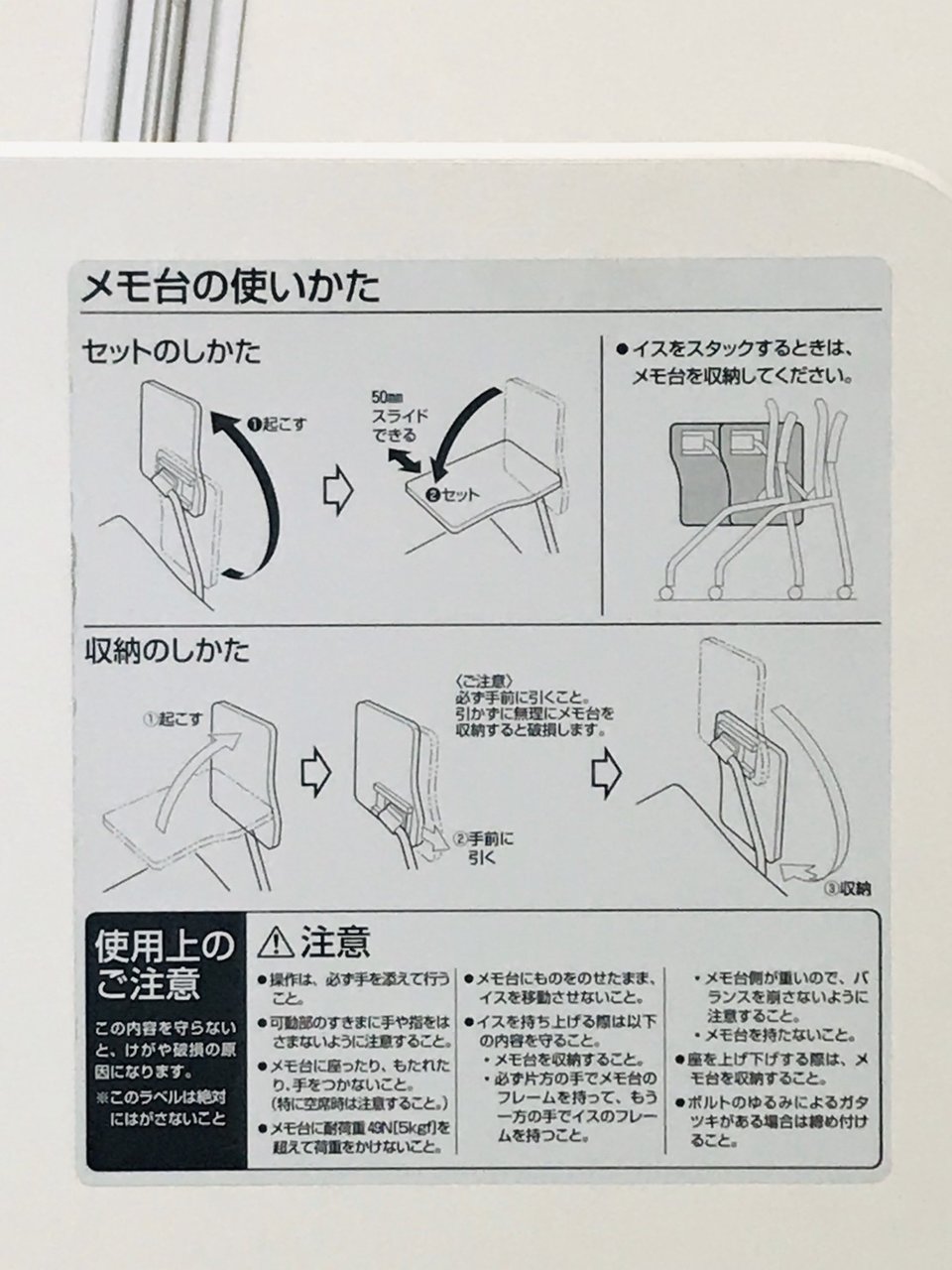 メモ台付ですのでミーティングやセミナー等で使う際にいかがでしょうか!