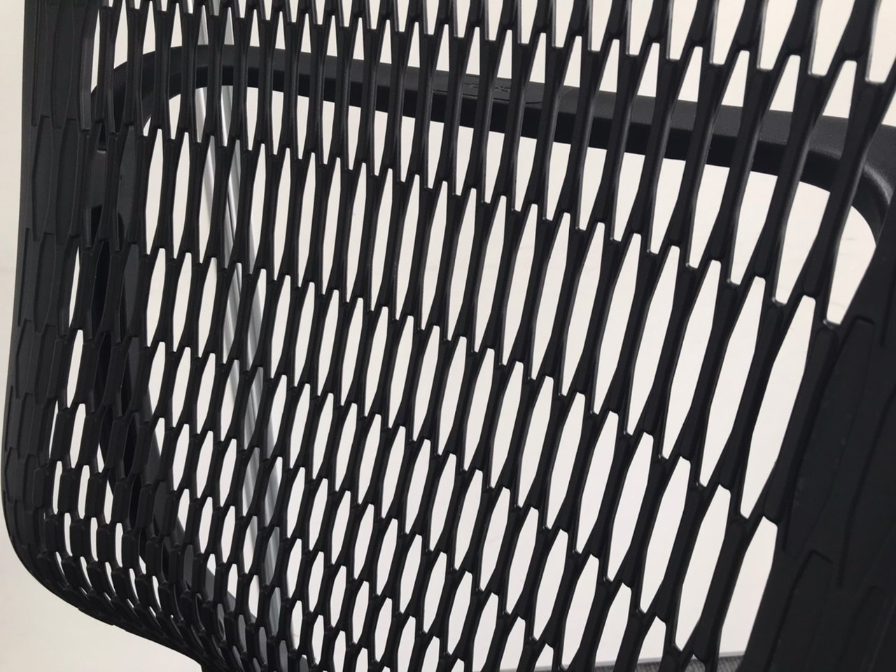 大きさの異なる網目を配置して座る人に合わせて自在に伸縮し、