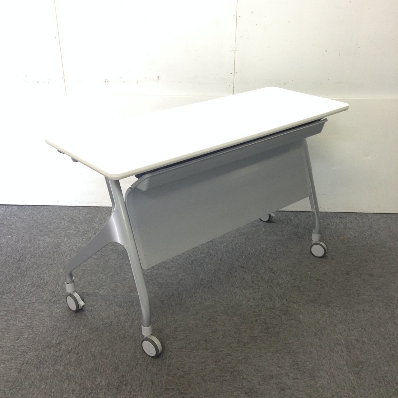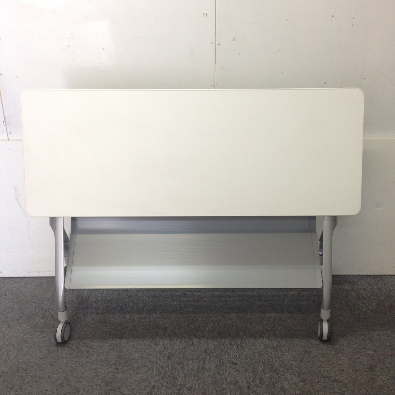 【折りたたみ収納が秀逸!スタイリッシュなデザインで高品質!】■コクヨ(KOKUYO)製 リーフラインシリーズ サイドスタックテーブル フラップタイプ W1200×D450㎜ ■キャスター・幕板付 ■ホワイト