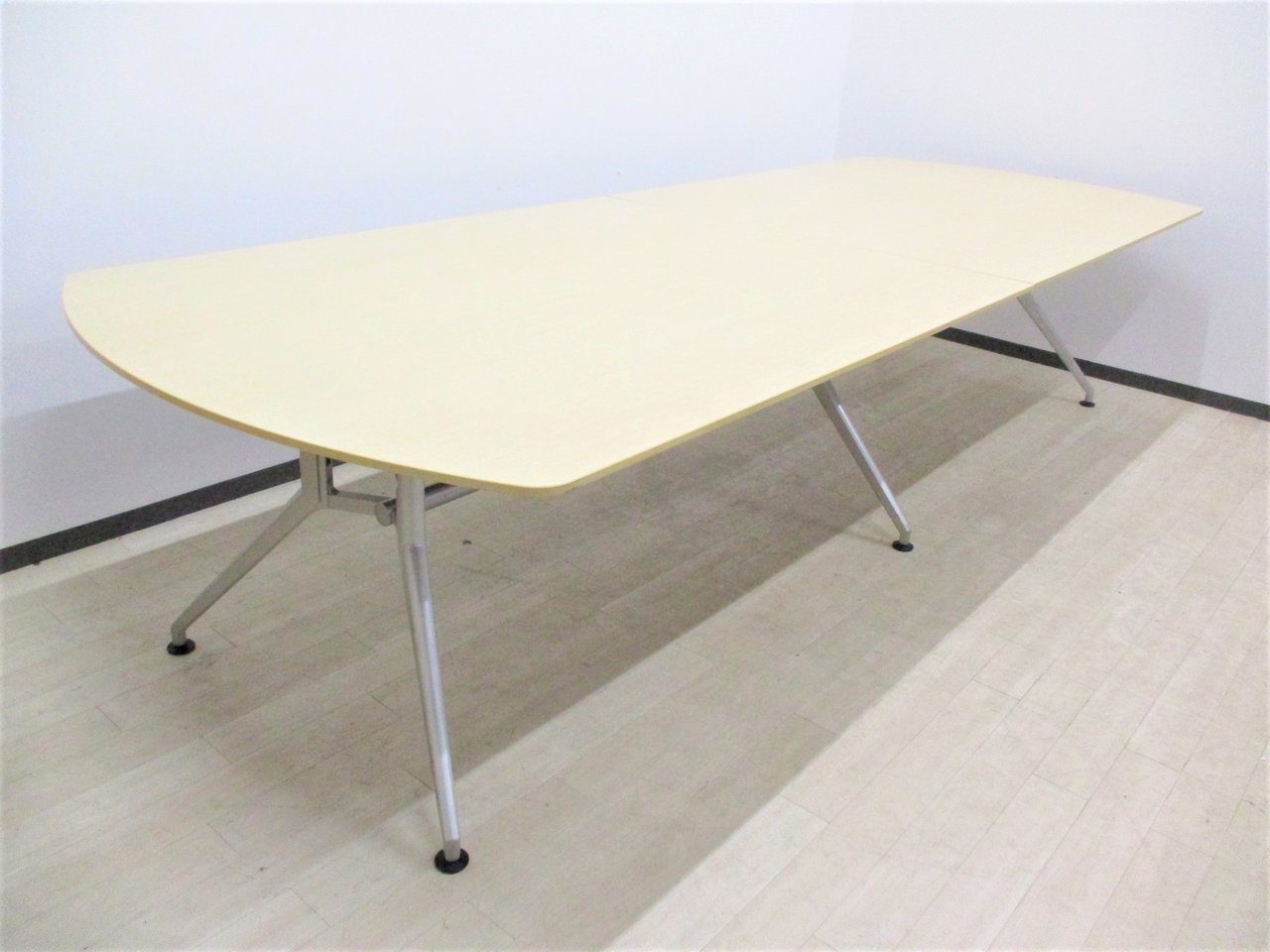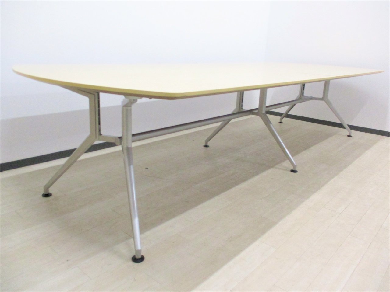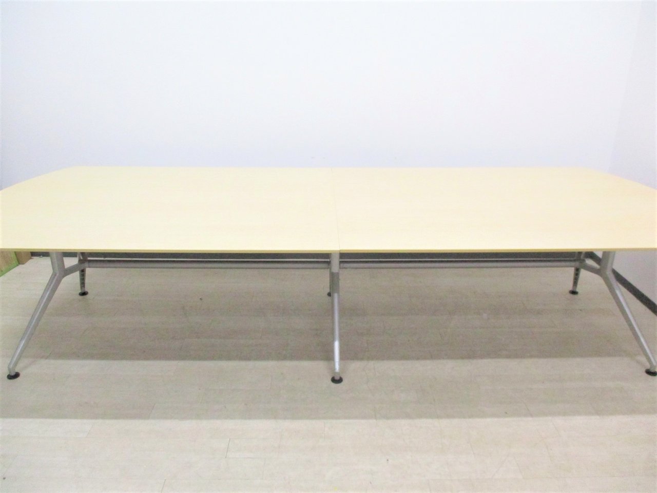 【会議室だけでなく休憩室でも!6~8名様対応・大型テーブル】■イトーキ(ITOKI) DDDシリーズ ミーティングテーブル 会議テーブル 幅2400×奥行900mm ■木目ナチュラル天板 脚シルバー色 オフィスバスターズ東大阪店