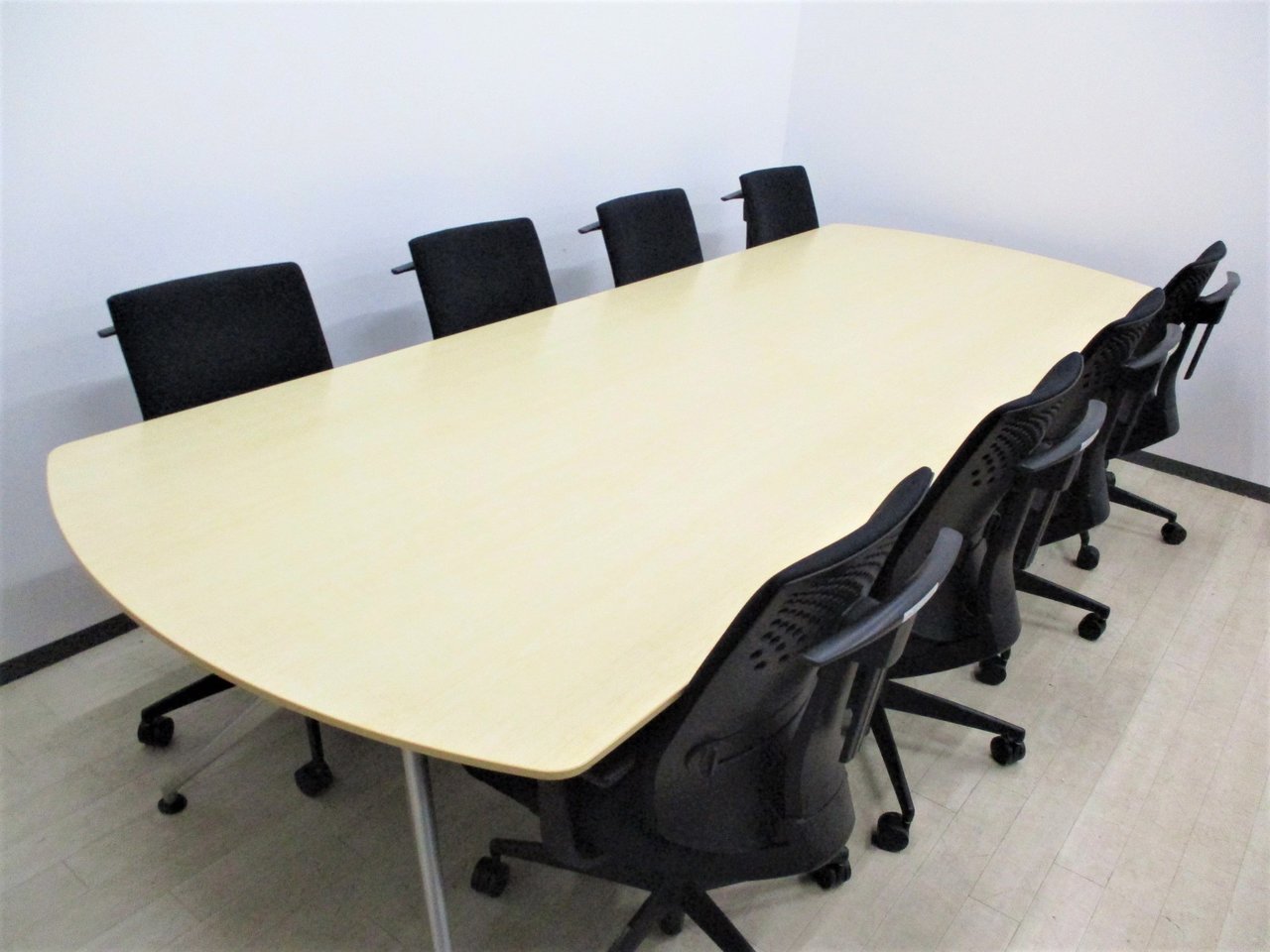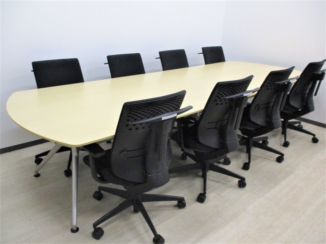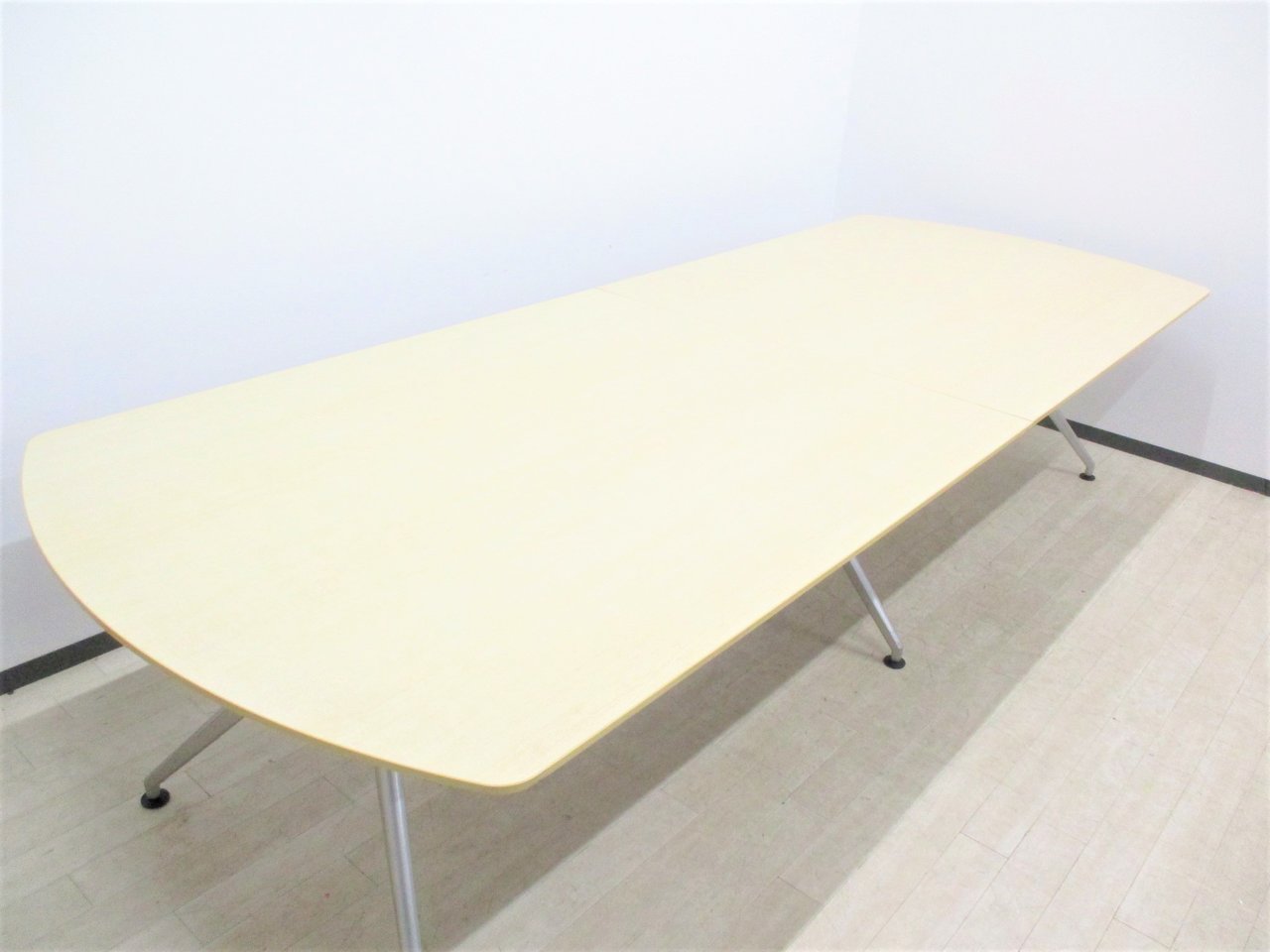 【会議室だけでなく休憩室でも!6~8名様対応・大型テーブル】■イトーキ(ITOKI) DDDシリーズ ミーティングテーブル 会議テーブル 幅2400×奥行900mm ■木目ナチュラル天板 脚シルバー色 オフィスバスターズ東大阪店