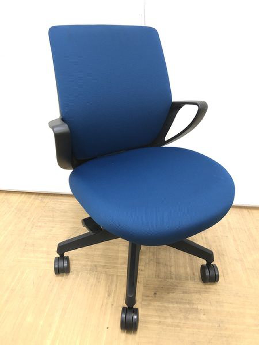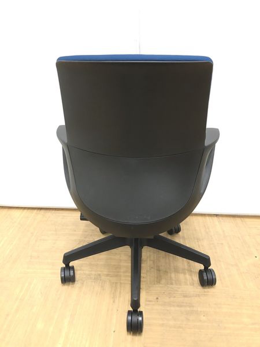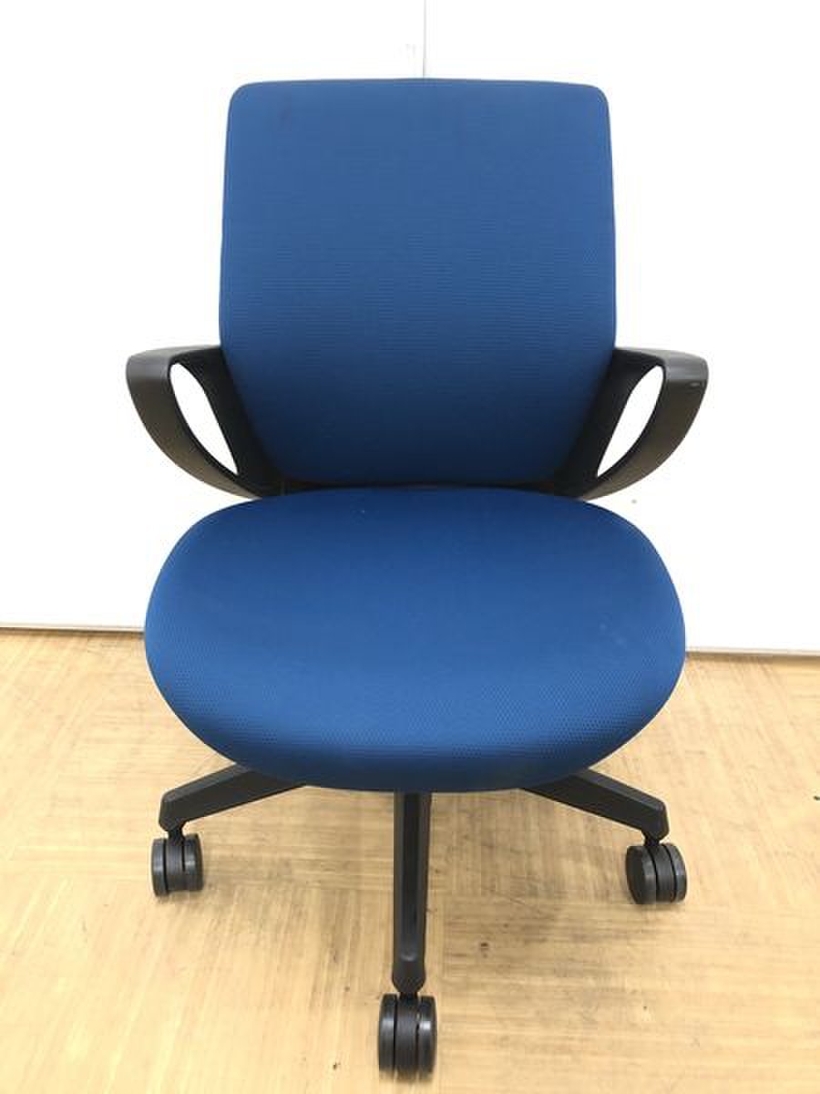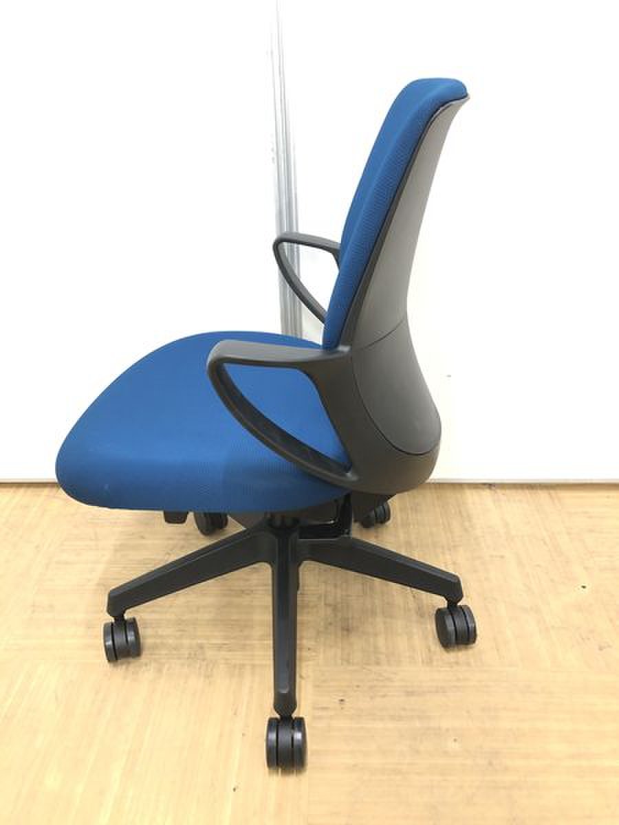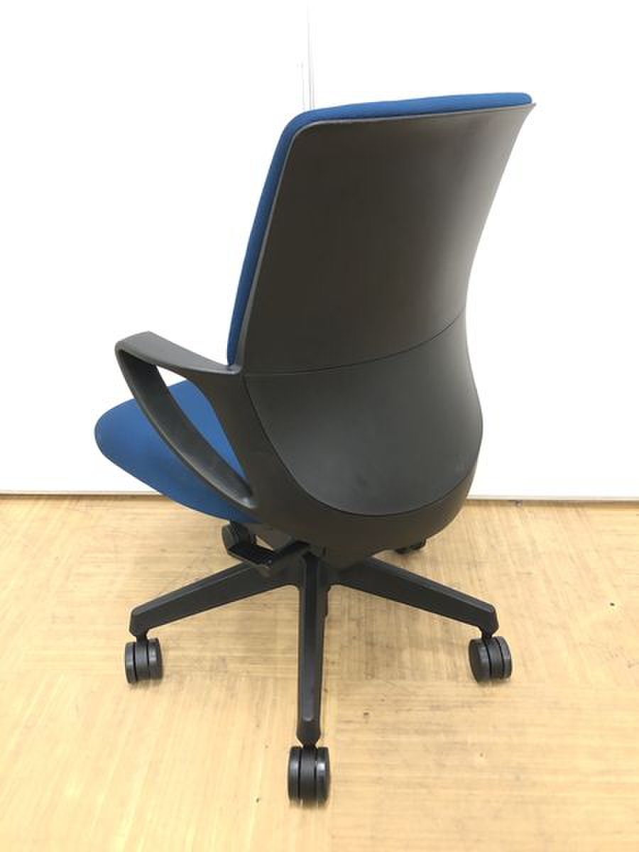 【デスクにスッキリ収納できるコンパクト設計!スマートデザインで使い勝手抜群!】■コクヨ(KOKUYO)製 ピコラ(picora)チェア 肘付き ローバック ■サークル肘 ■プルシアンブルー×ホワイトシェル×脚ブラック※背面日焼け有