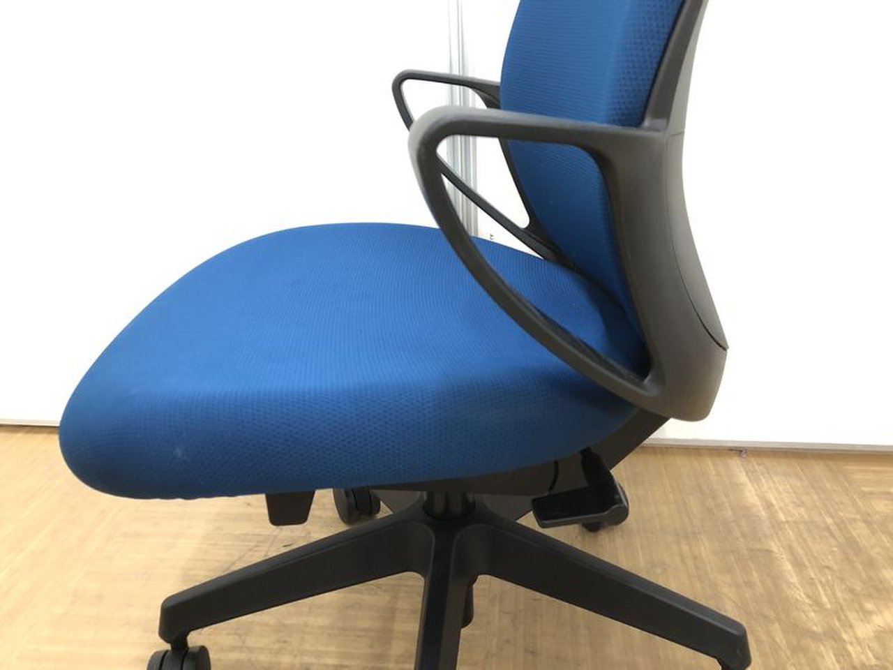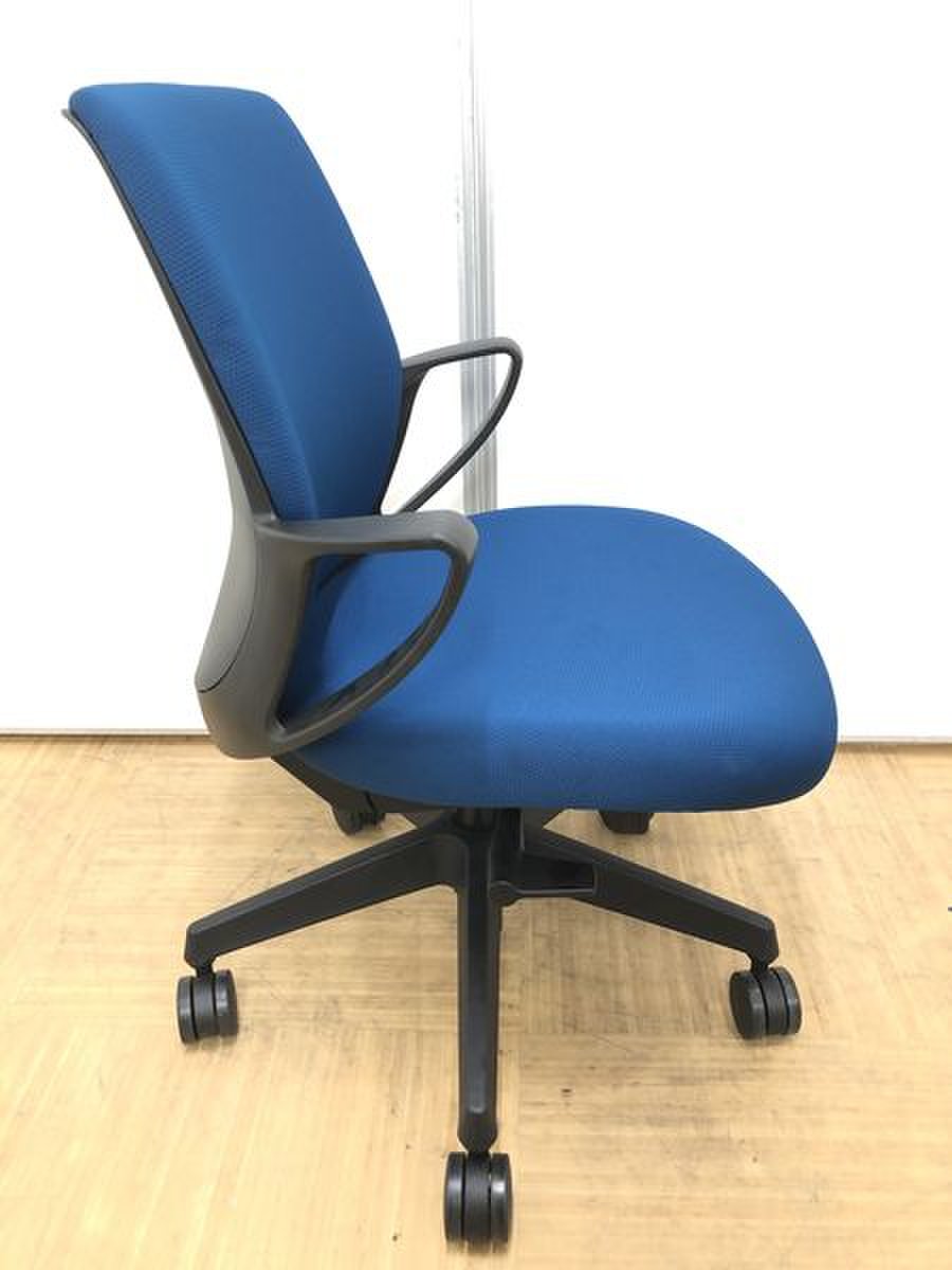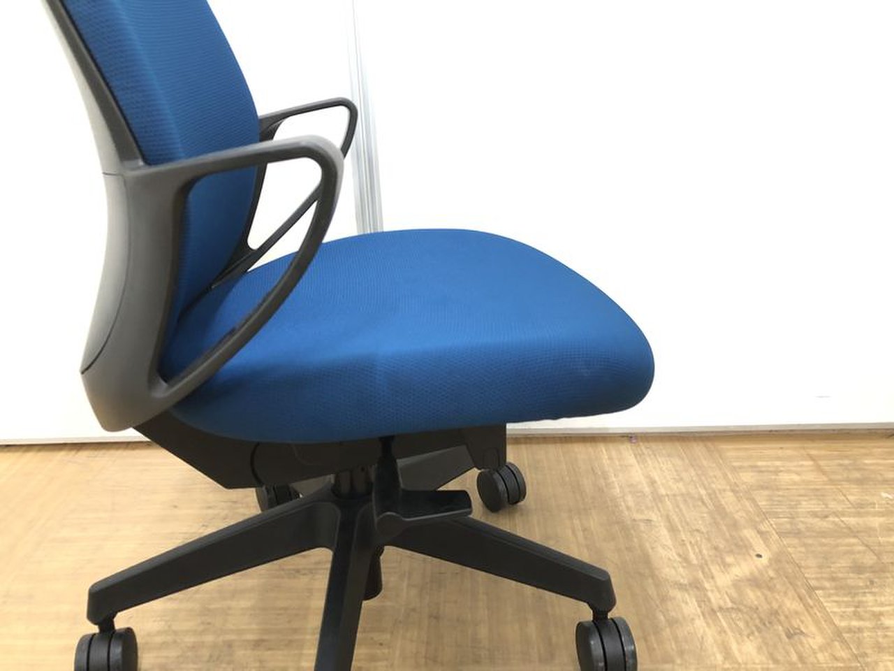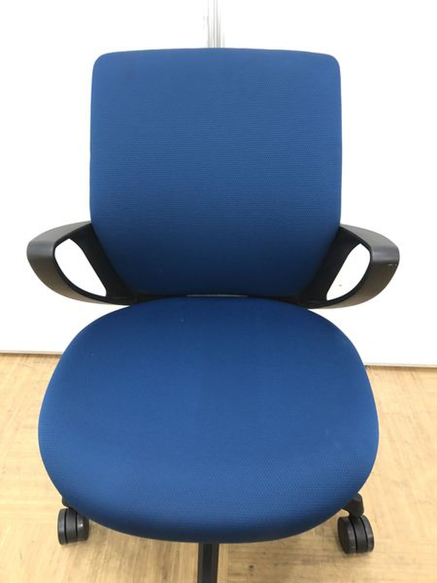 【デスクにスッキリ収納できるコンパクト設計!スマートデザインで使い勝手抜群!】■コクヨ(KOKUYO)製 ピコラ(picora)チェア 肘付き ローバック ■サークル肘 ■プルシアンブルー×ホワイトシェル×脚ブラック※背面日焼け有