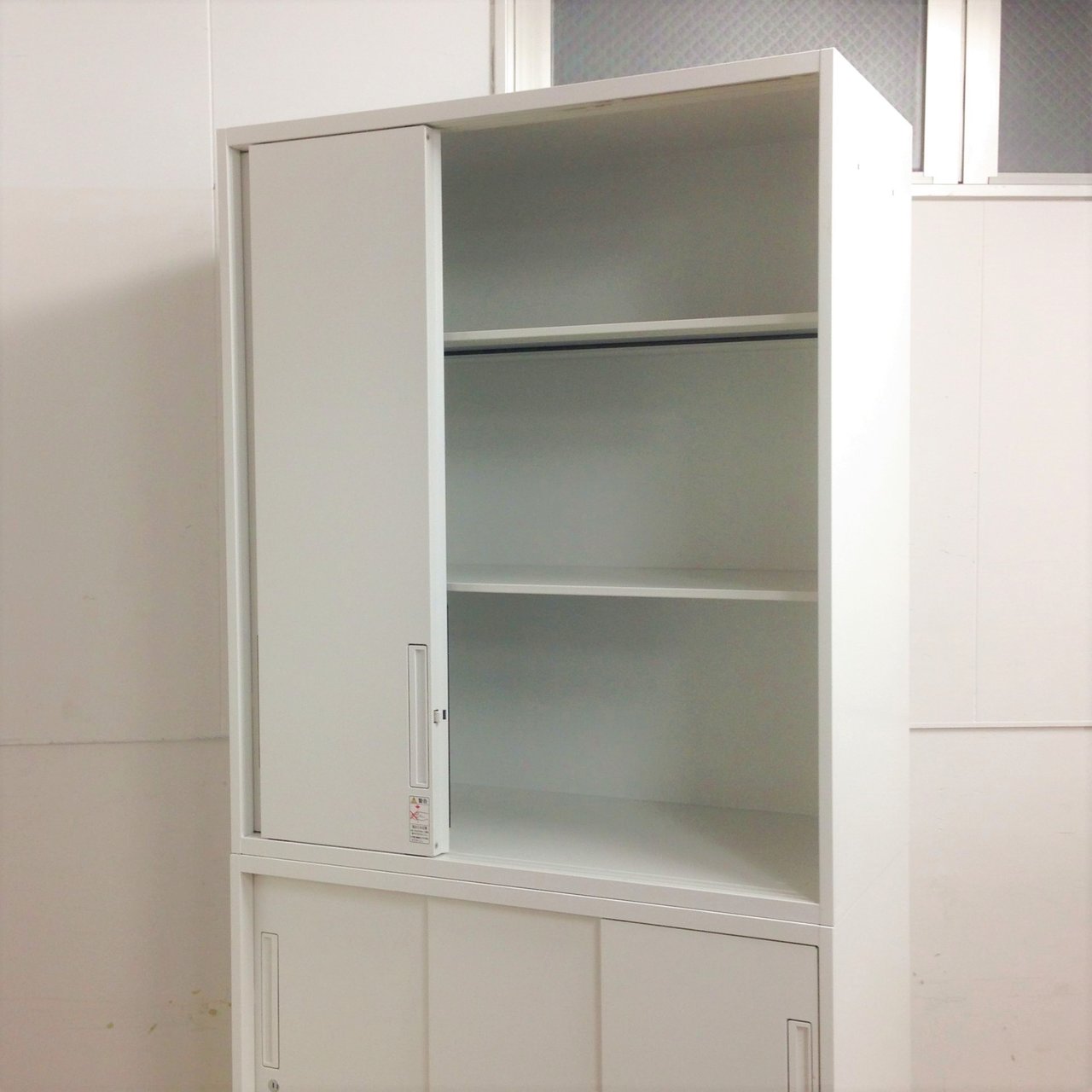 【オフィスの書類をまとめて整理!希少な両開き+引き違い書庫セットが入荷!!】■コクヨ(KOKUYO)製 エディアシリーズ 両開き+引き違い 書庫セット H2015㎜ ■2枚扉 ■シリンダー錠 ■ホワイト【AD】