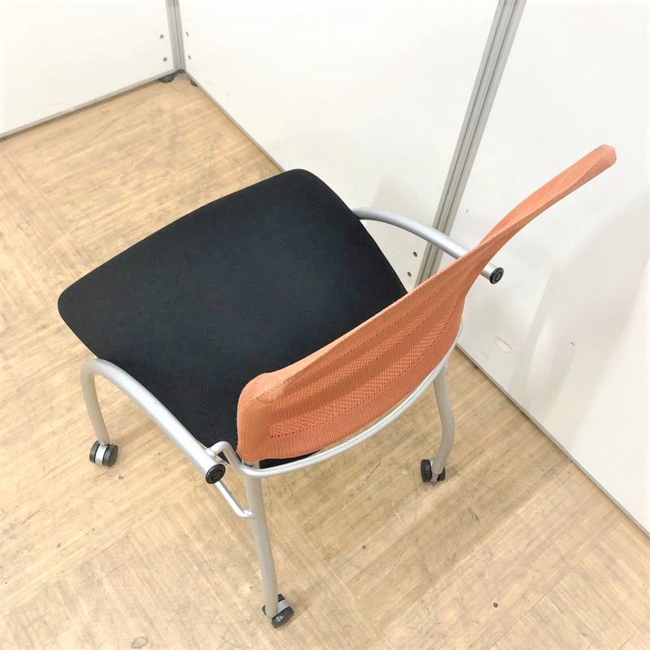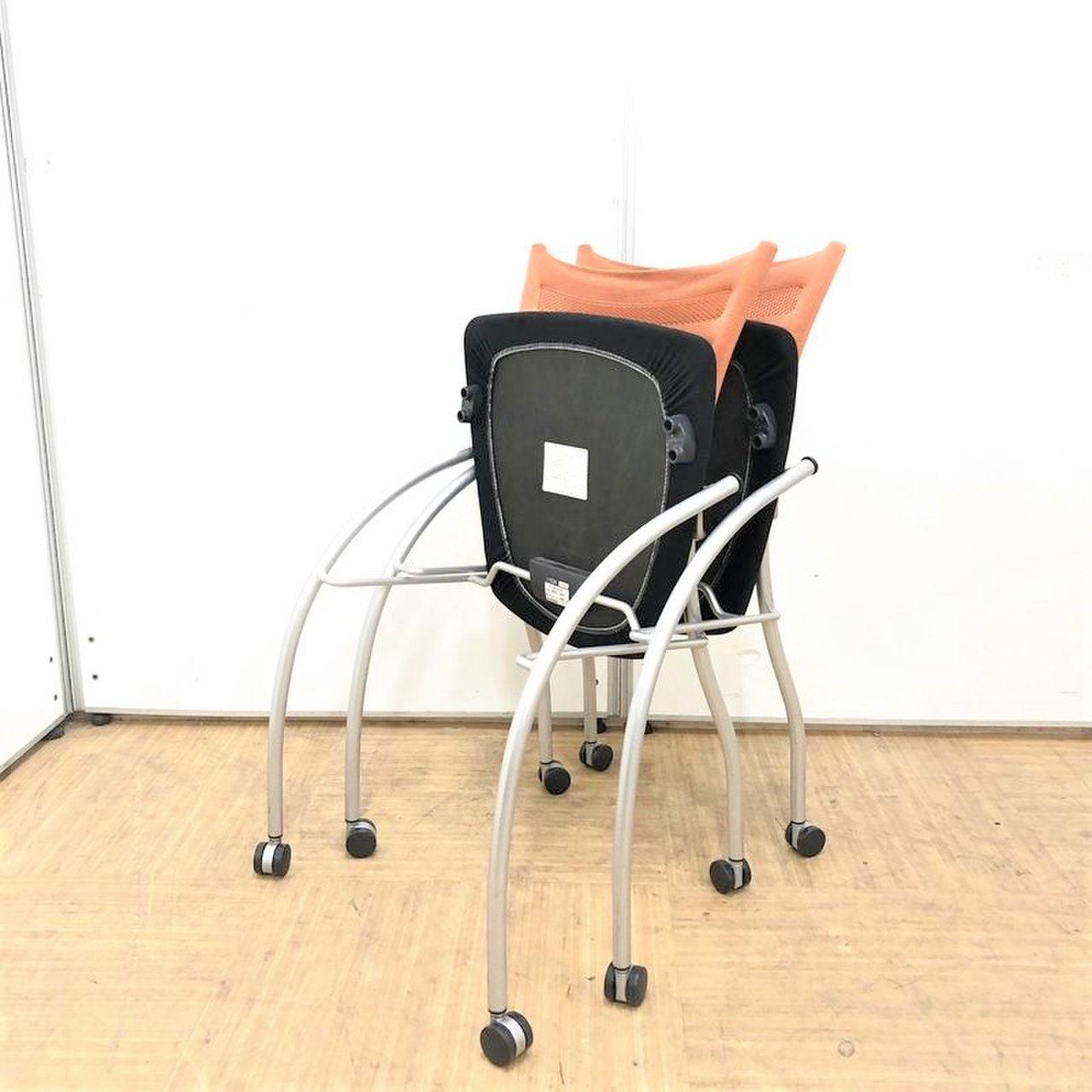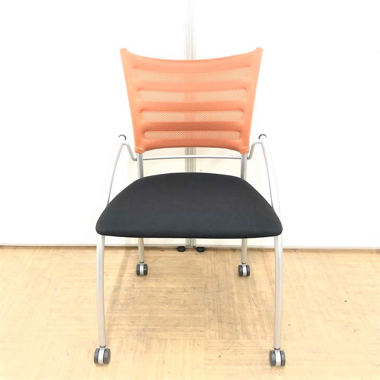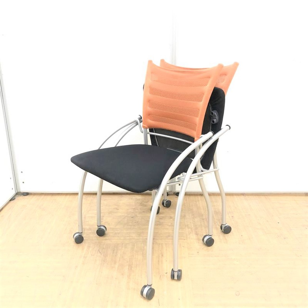 【面談用に最適な2脚セット】ネスティングチェア2脚セット【オレンジカラーがオフィスに映える】- 名古屋本店