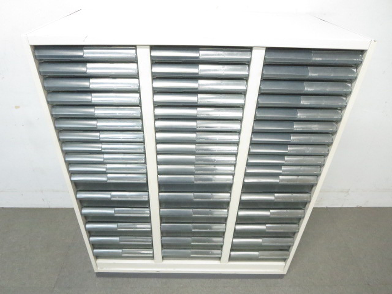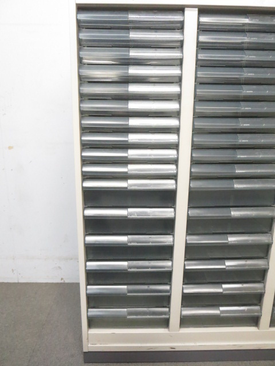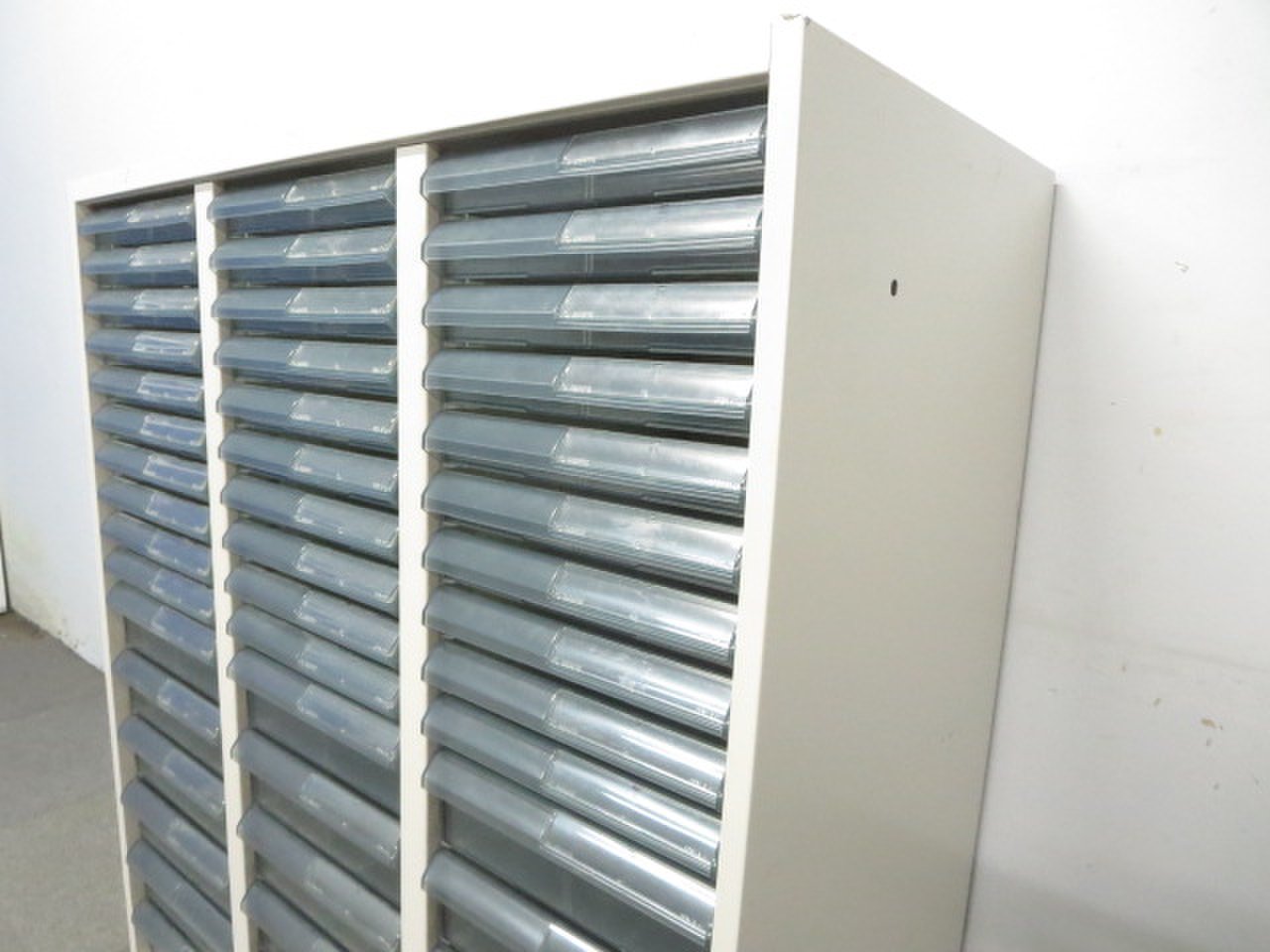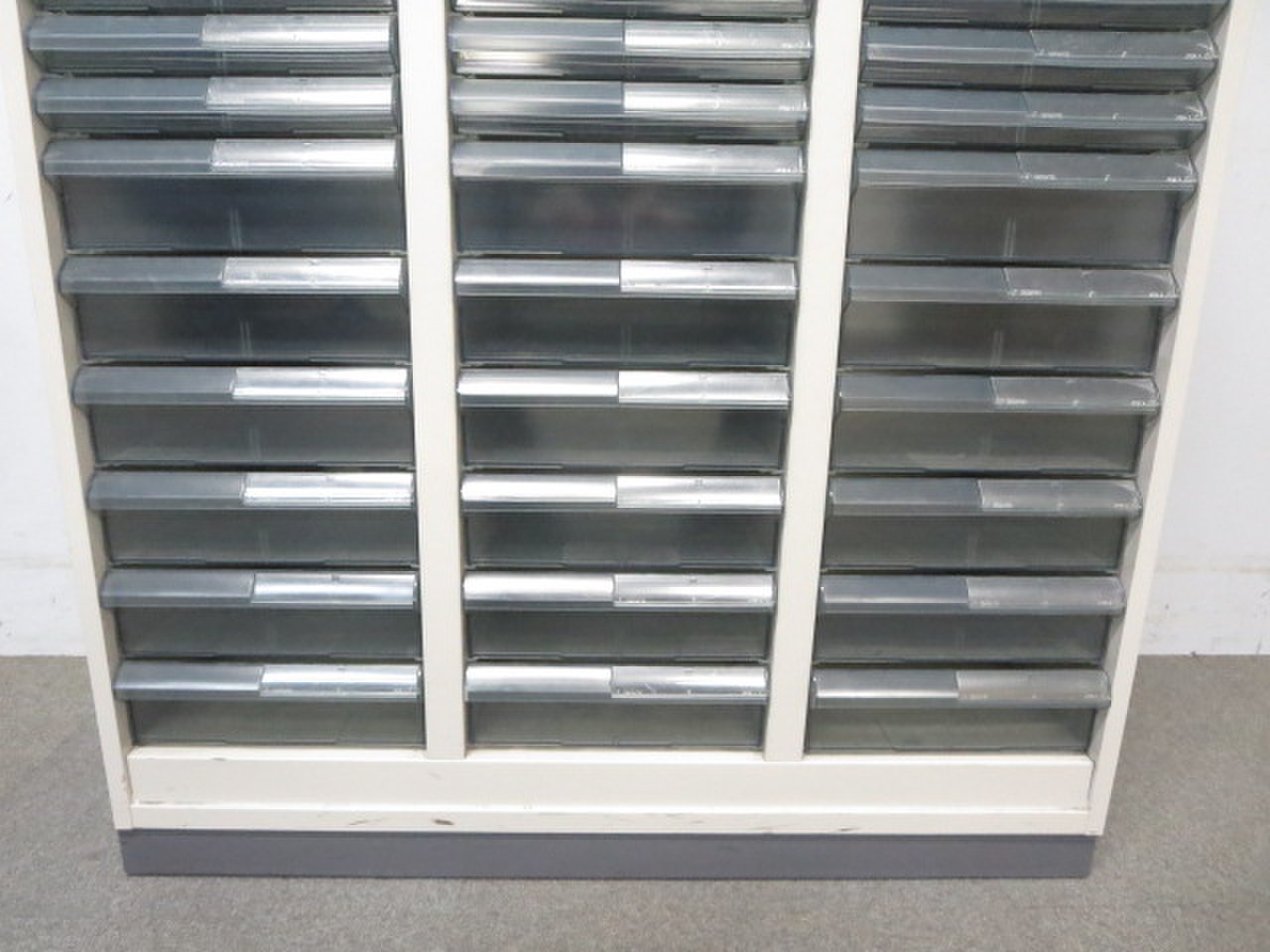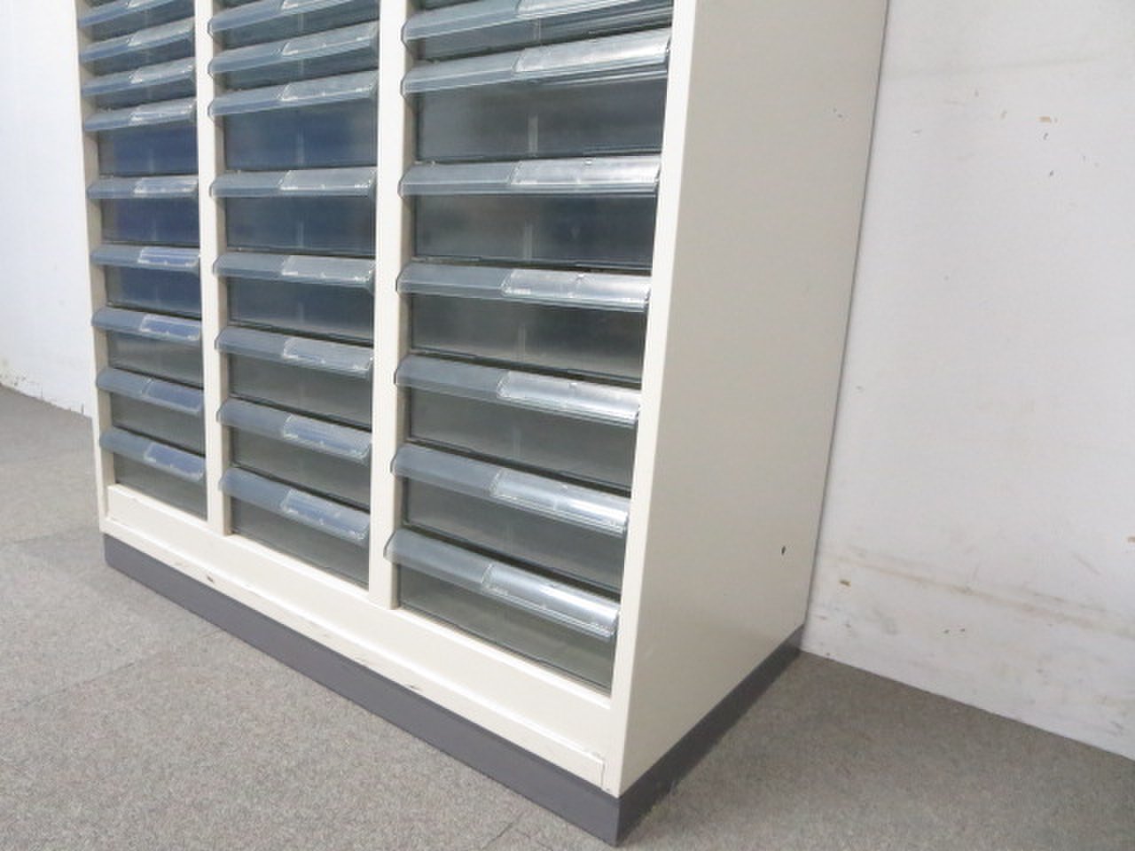 - 多数不具合あり引出の開閉不可、施錠不可、棚板無しといったその書庫の本来の効用を果たすための機能以外の多数が使用不可(例、扉、引出の開閉がしづらいなどがある。 )