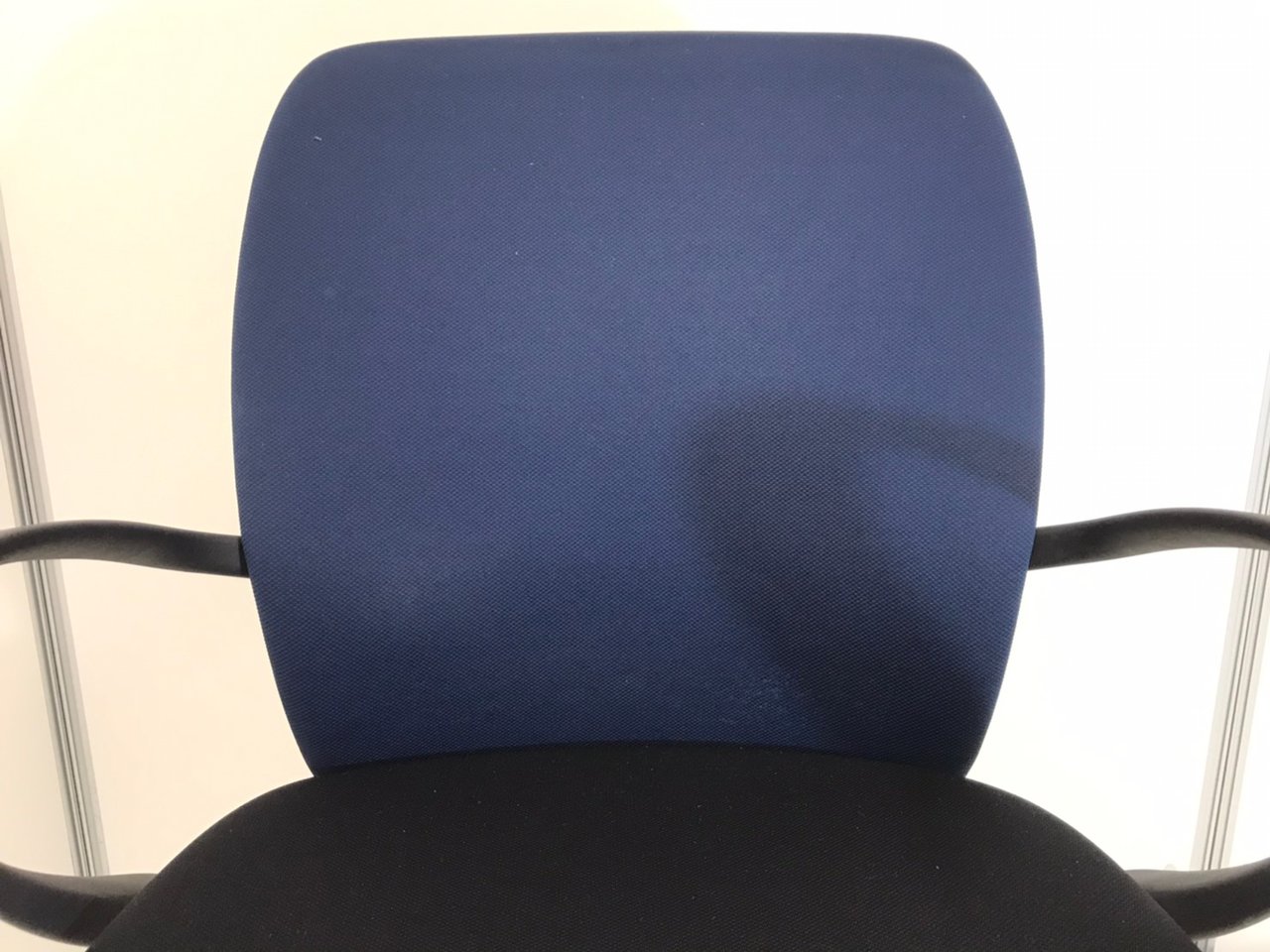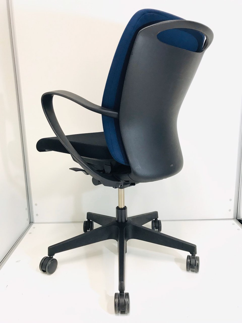 【定価約8万円】【座る人を選ばない、シンプルスタイルな定番シリーズ!把手付きで汚れ対策&持ち運びラクラク!】 ■イトーキ(ITOKI)製 フルゴチェア 肘付ローバック ■固定肘 ■背面:ネイビーブルー/座面:ブラック