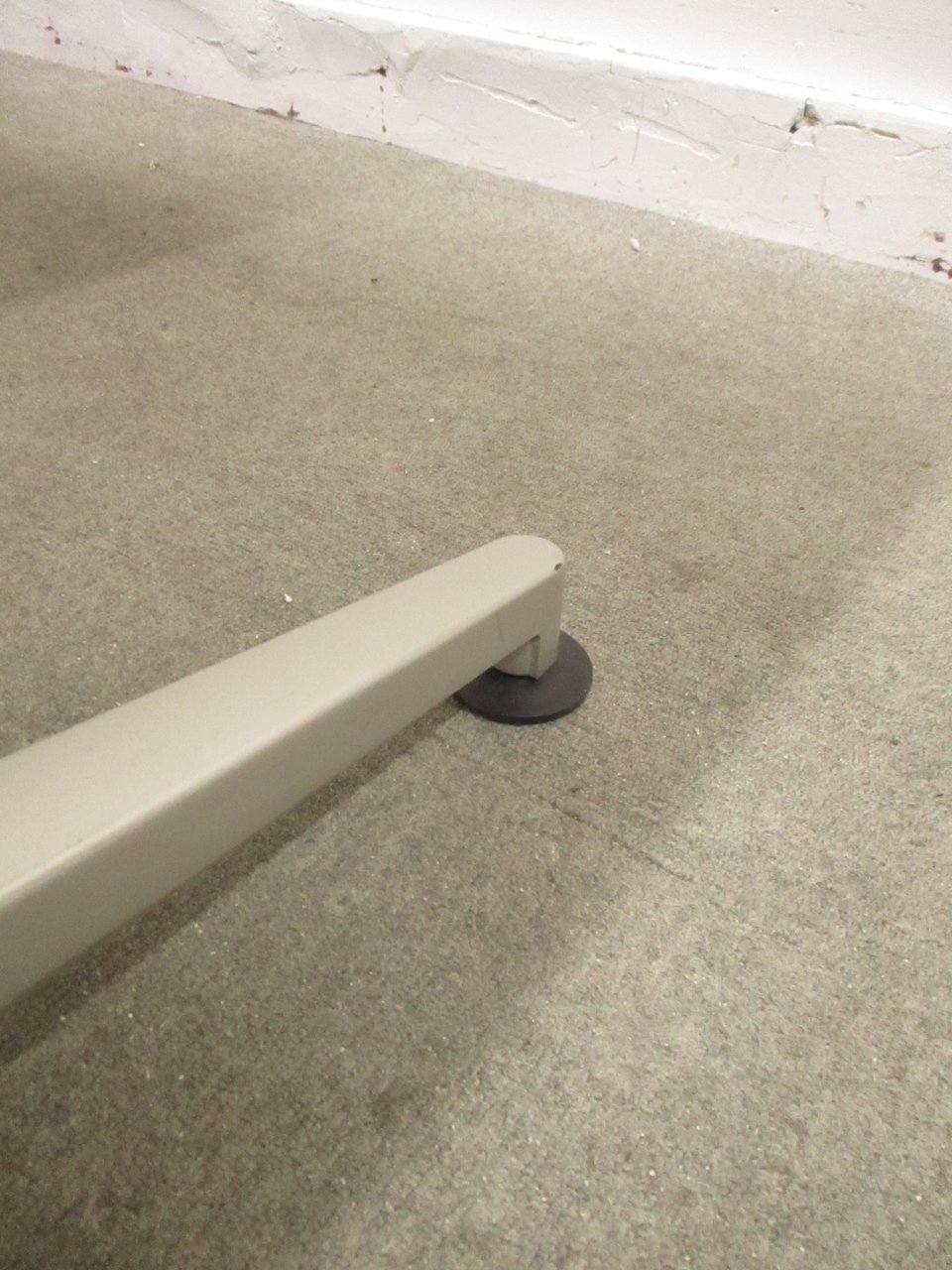- 一部不具合あり天板歪み、アジャスター無し、キャスター使用不可ようなそのテーブルの本来の効用を果たすための機能以外の一部が使用不可な状態。(例、キャスターロッ ク機能使用不可、棚板無し等がある。)