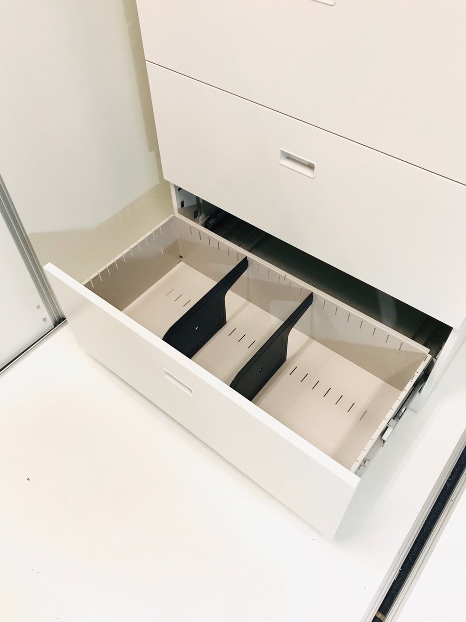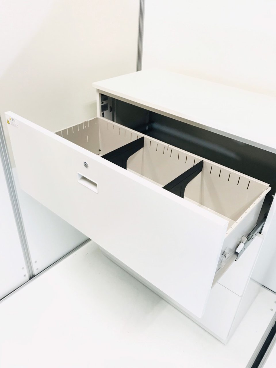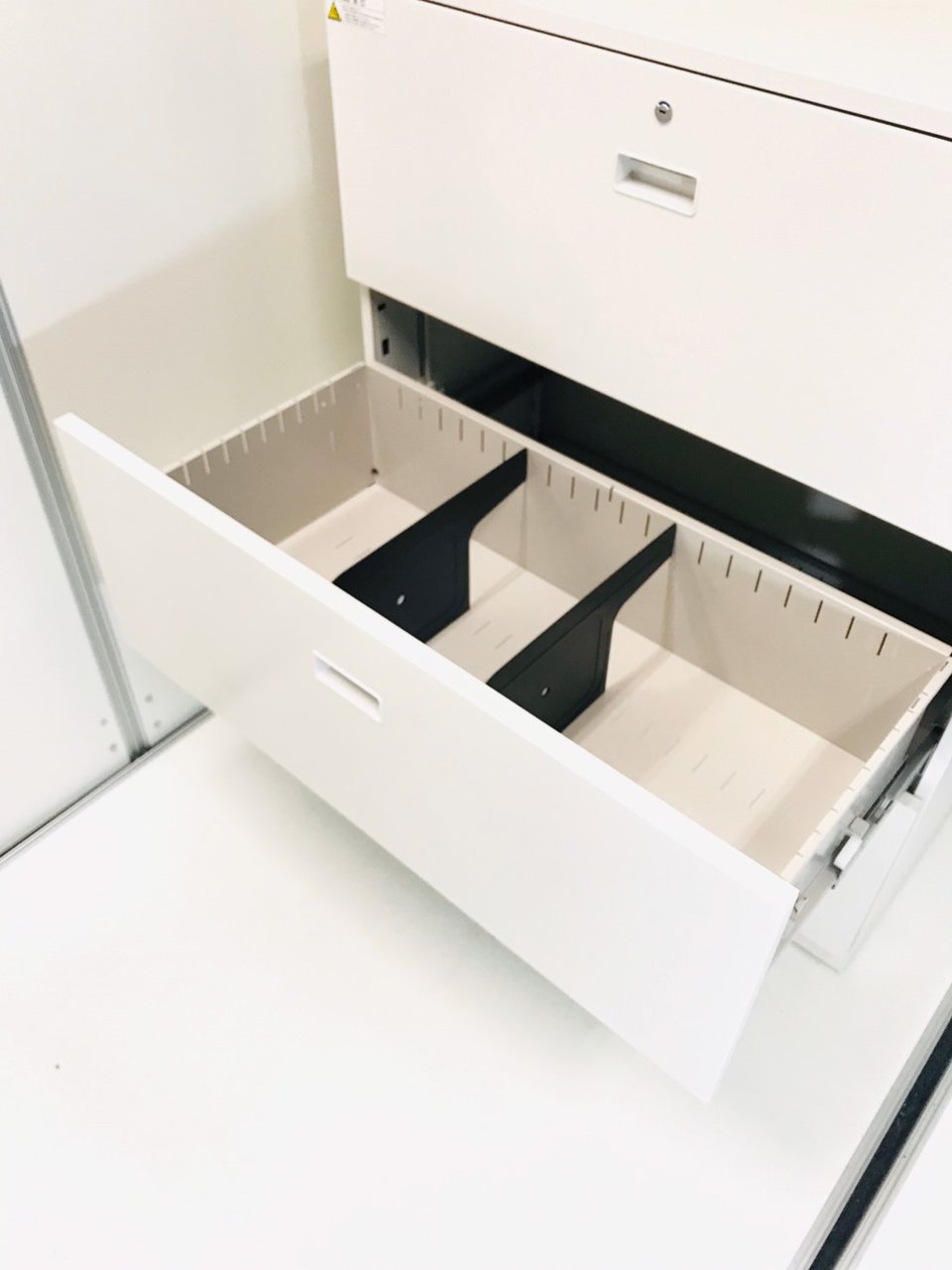 【珍しい2段ラテラルタイプ!】耐久性・機能性を兼ね備えたキャビネット!スペースにジャストフィットする引き出し型収納 ■イトーキ/シンライン/ホワイト シリンダー錠