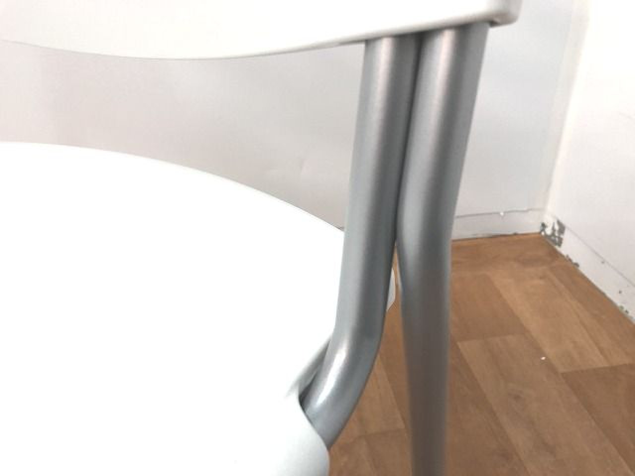 - かなり強い濃い黄ばみ・変色が商品全体にある。(例、座面・背もたれ、脚部等にある。)