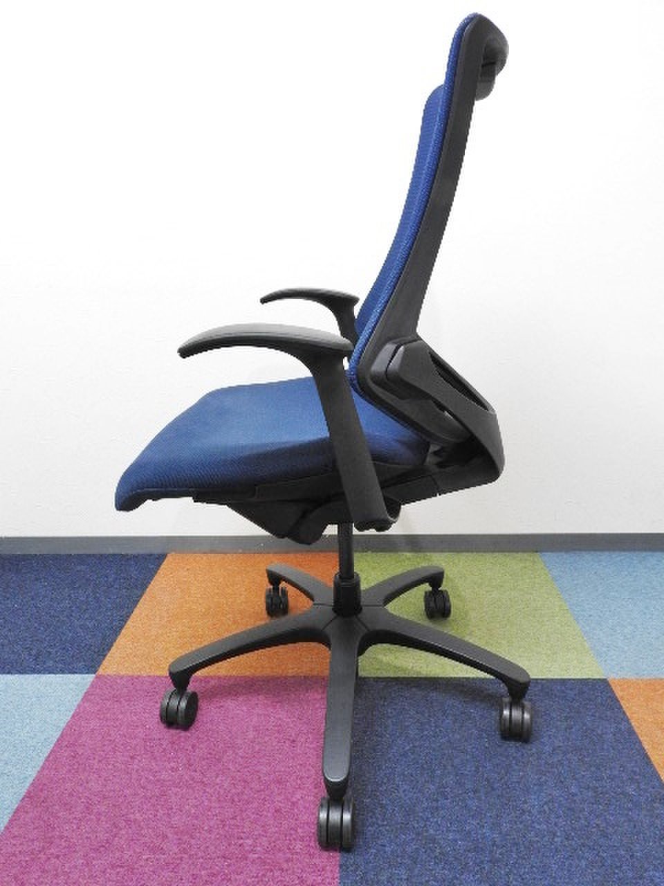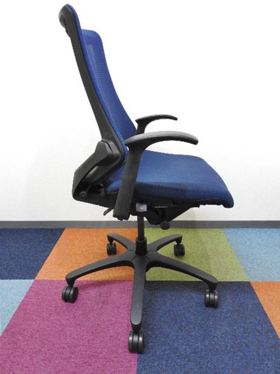 【入替セール】【姿勢の変化に寄り添う、体にフィットする快適な座り心地!】■イトーキ(ITOKI)製 エフ(f)チェア 肘付き ハイバック クロスバックタイプ ■可動肘 ■ストロングブルー×ブラックシェル