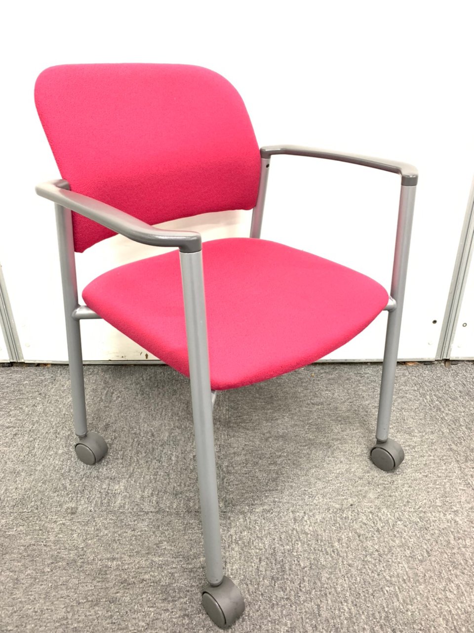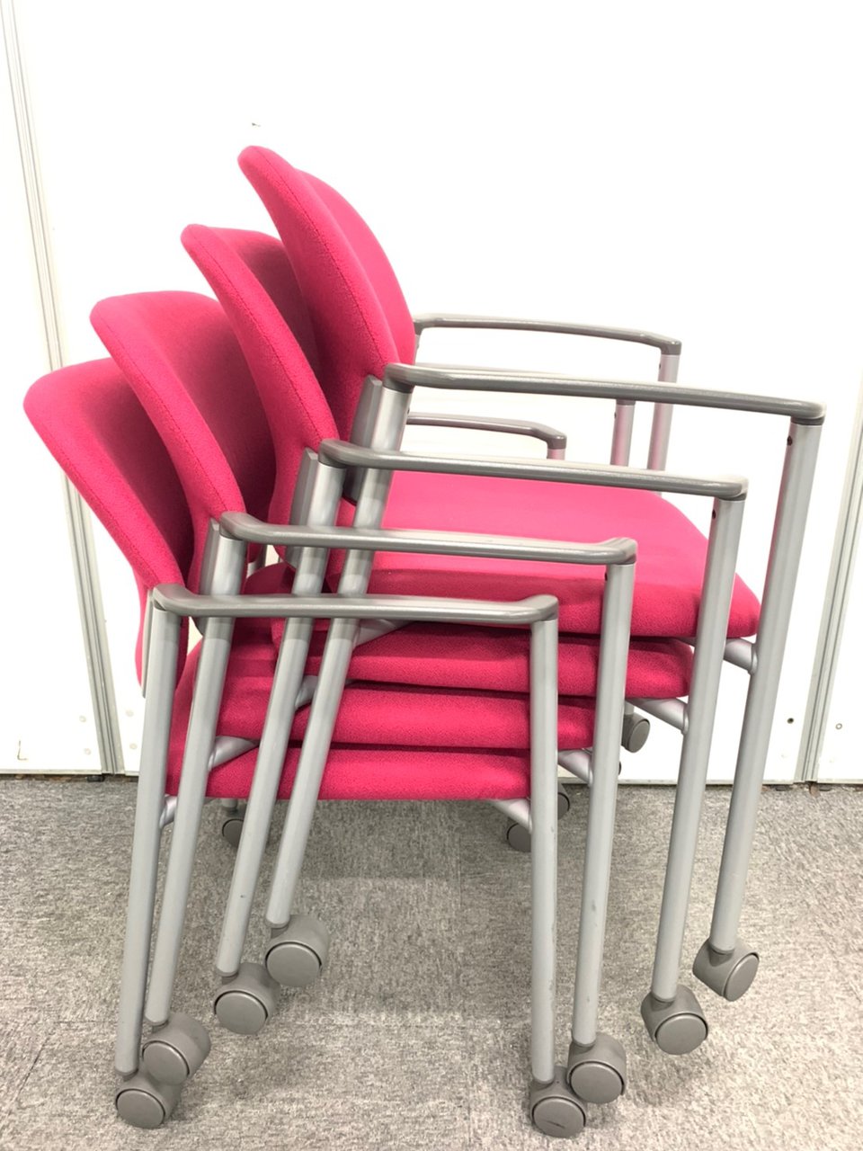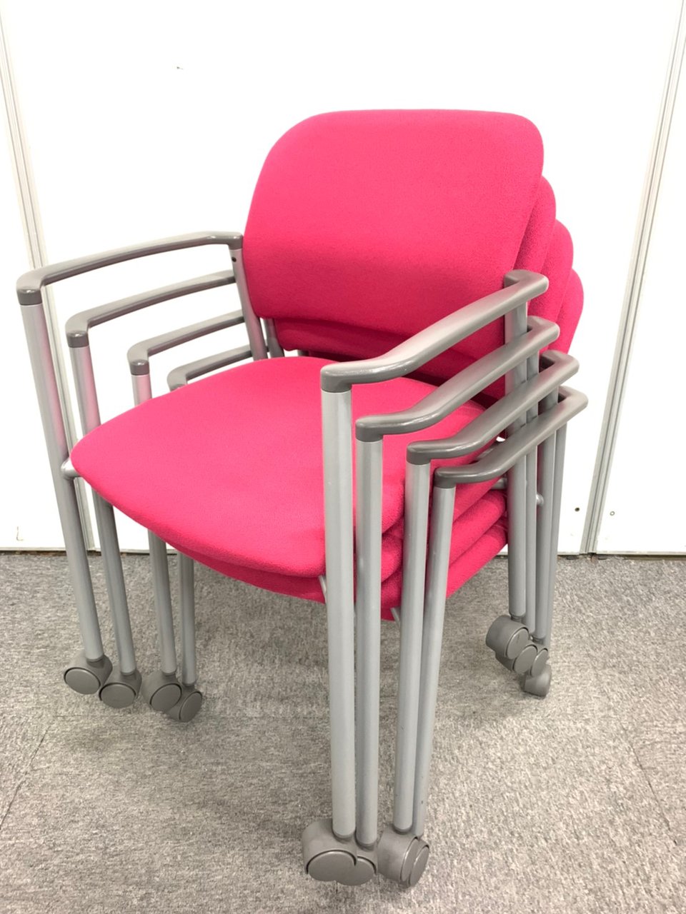 重ねて収納が出来る便利な吸ったキングチェア! コクヨ製 鮮やかなピンクカラー 【4脚セット】- 神戸・三宮店