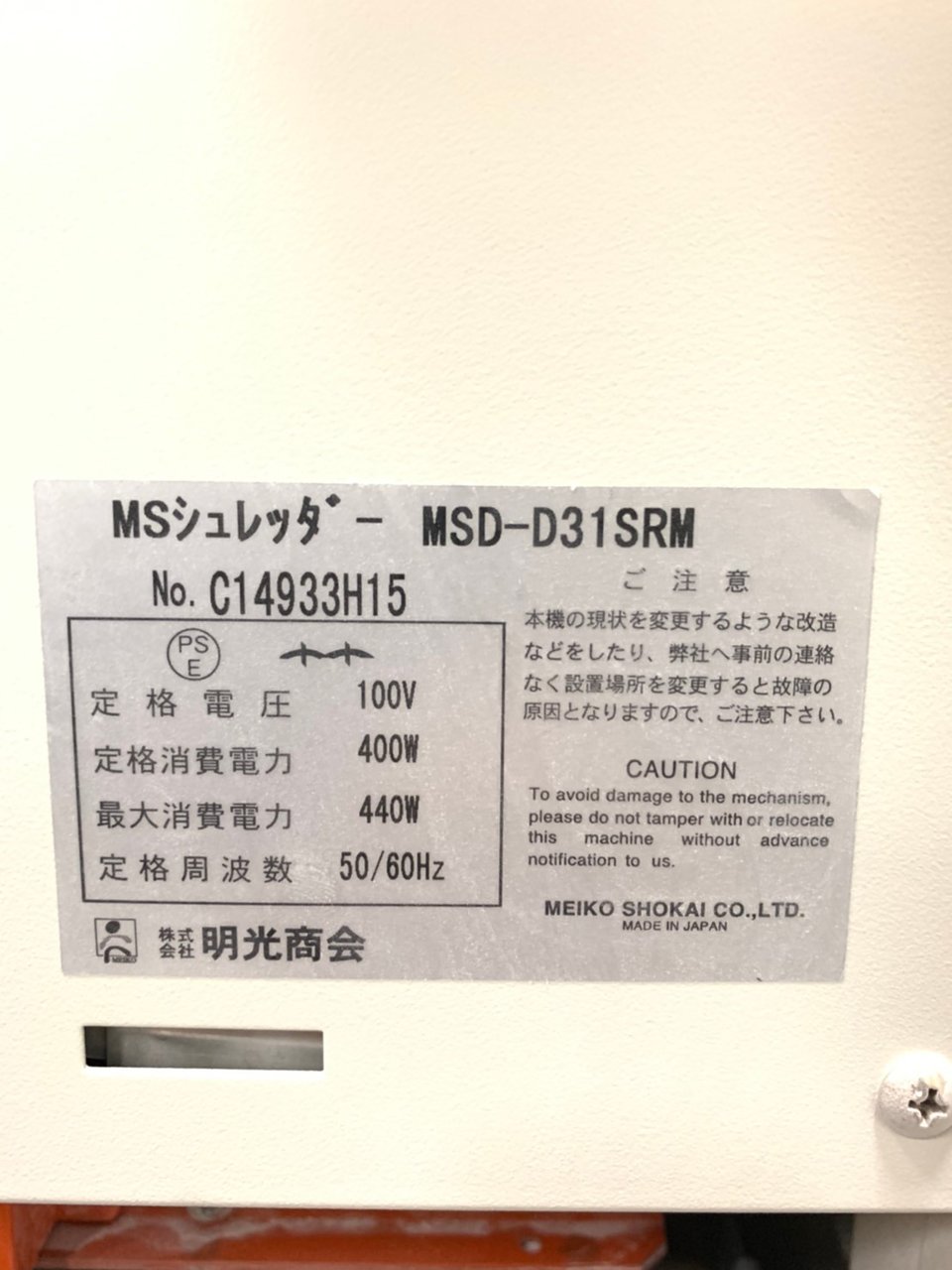 【中古】 MSシリーズ MSD-D31SRM 明光商会 シュレッダー 279464