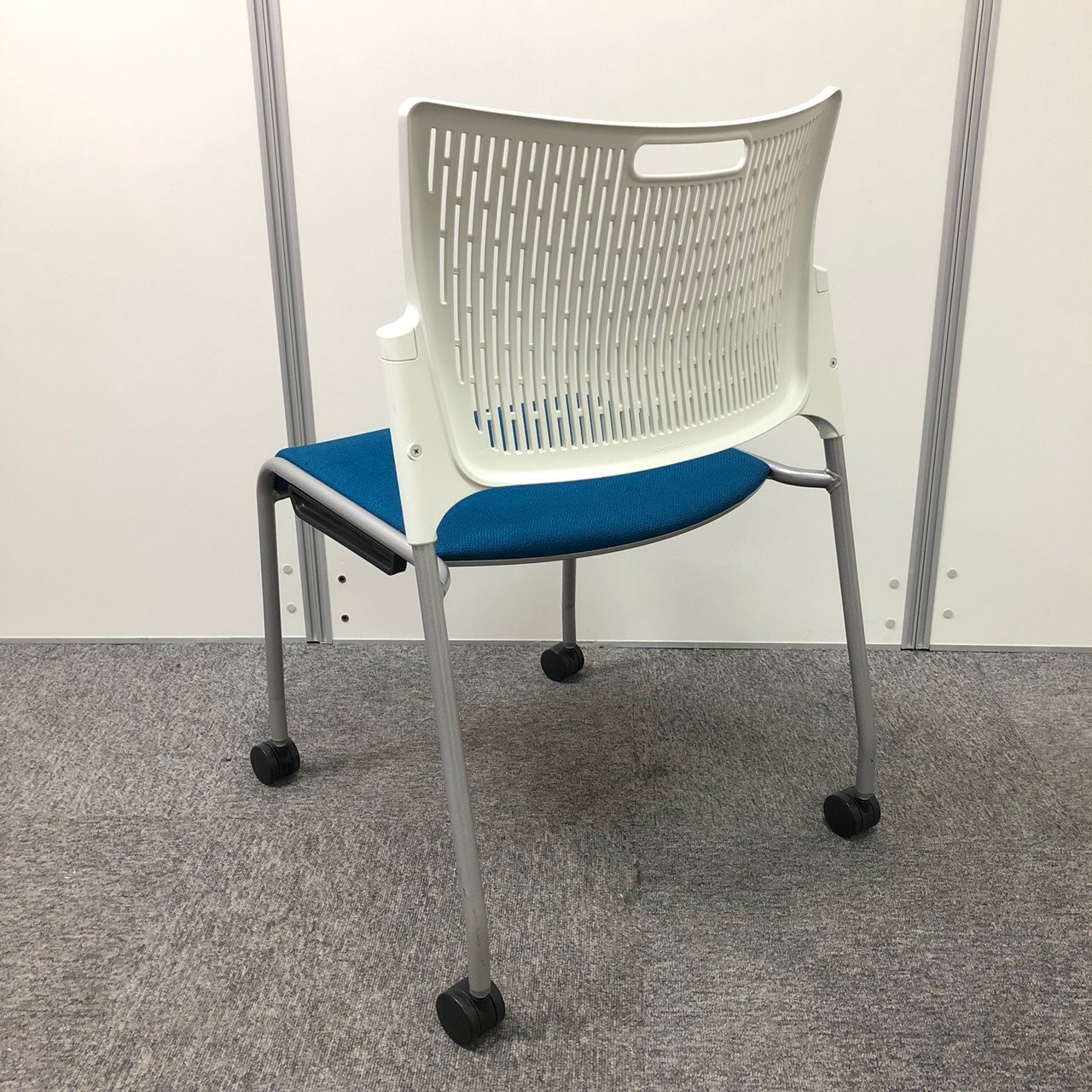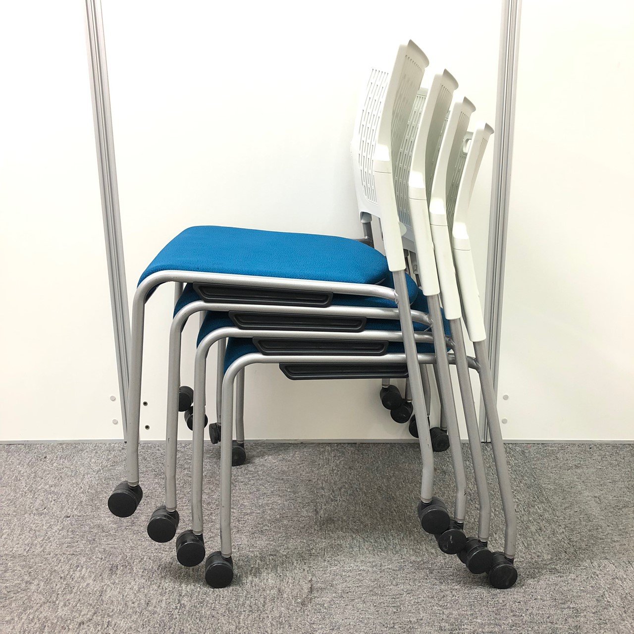 【重ねて収納可能!さわやかなカラーとシンプルデザイン!】■オカムラ製 レーテ スタッキングチェア ミーティングチェア ■キャスター付き ■座面ブルー×背面ホワイト【2412】弊社使用欄【A00990049】