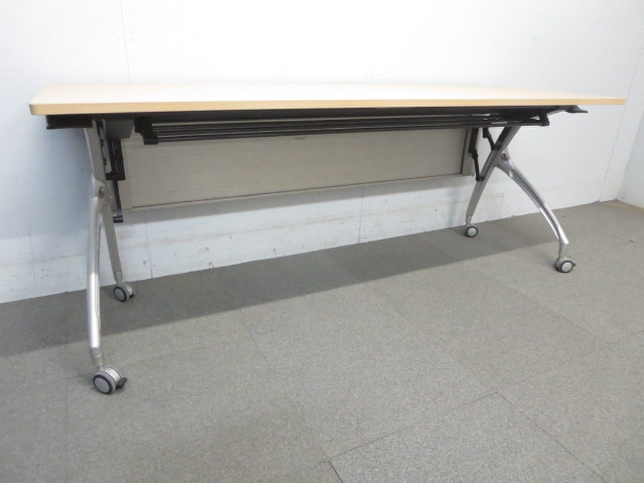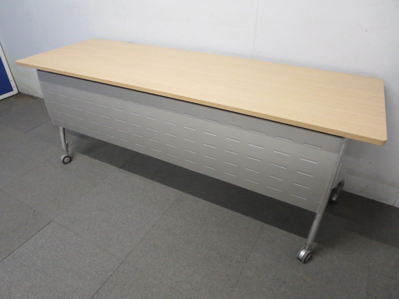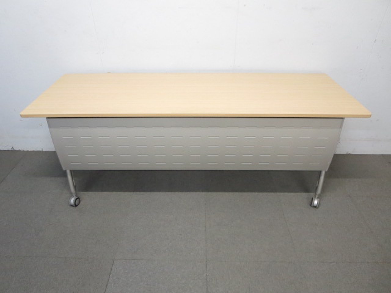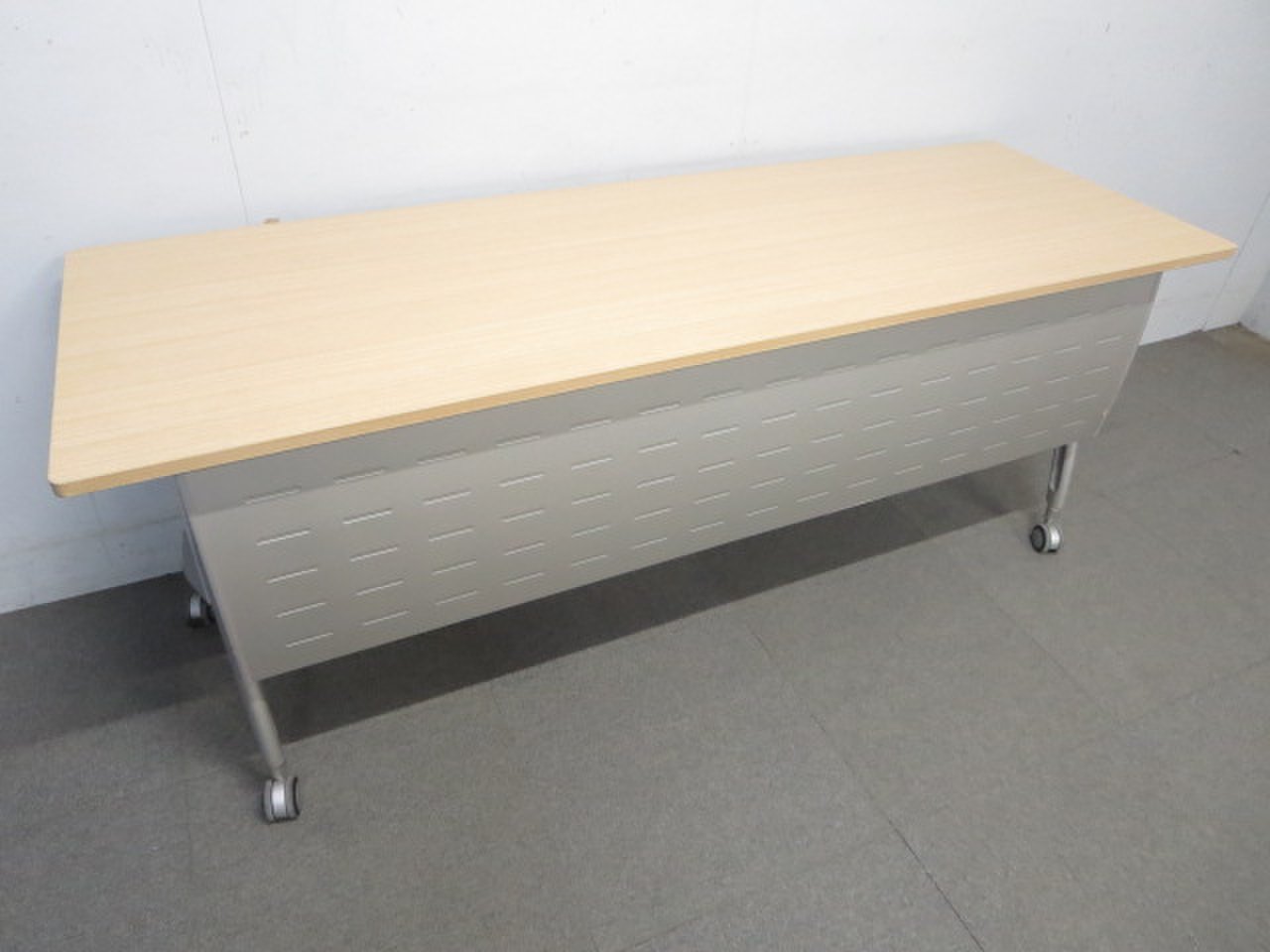 ■イトーキ製 サイドスタックテーブル 幕板パネル付 ■W1800×D600mm ナチュラル木目カラー- 川崎店