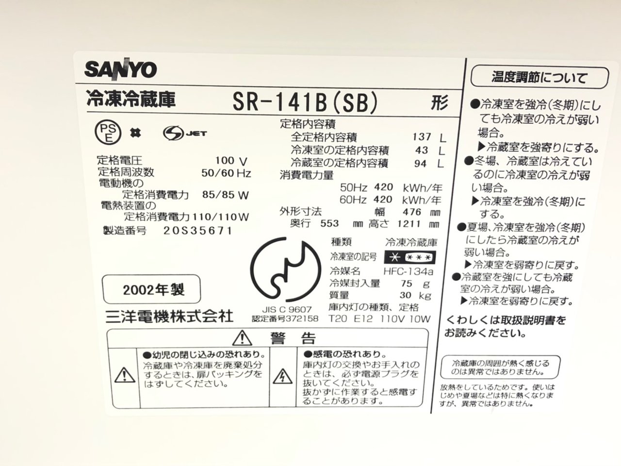 【中古】 SR-141B SANYO 冷蔵庫 279675