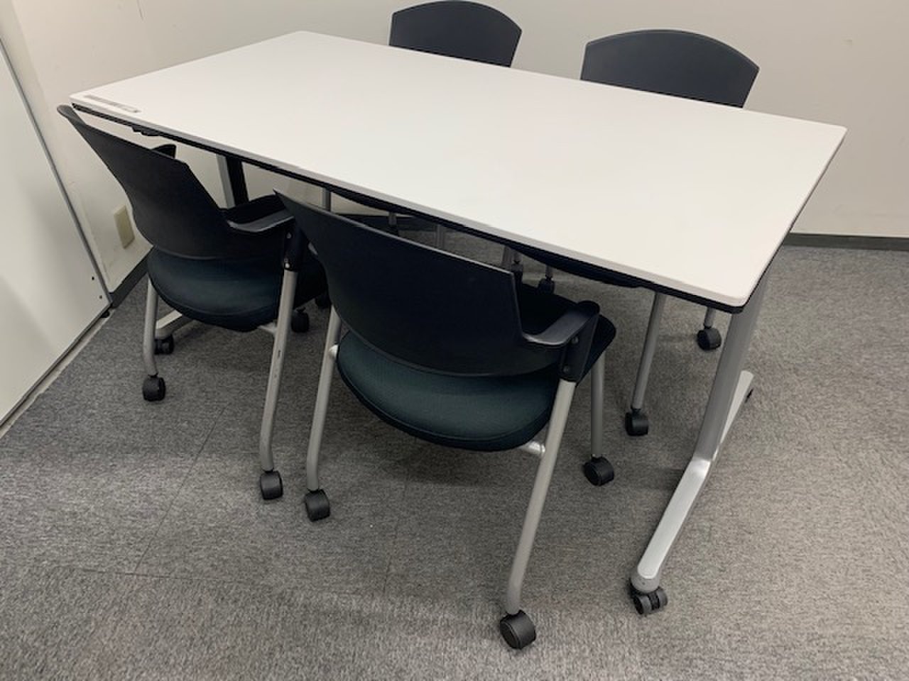 【4名ミーティングにオススメ】【キャスター付テーブル+チェア セット】オカムラ/コクヨ【中古家具】【新大阪店】- 新大阪店