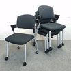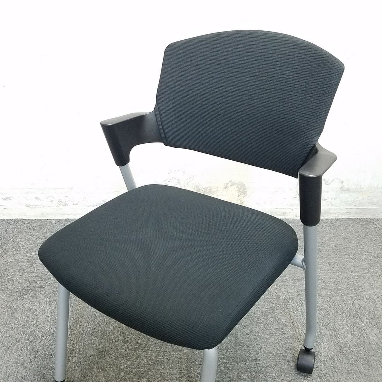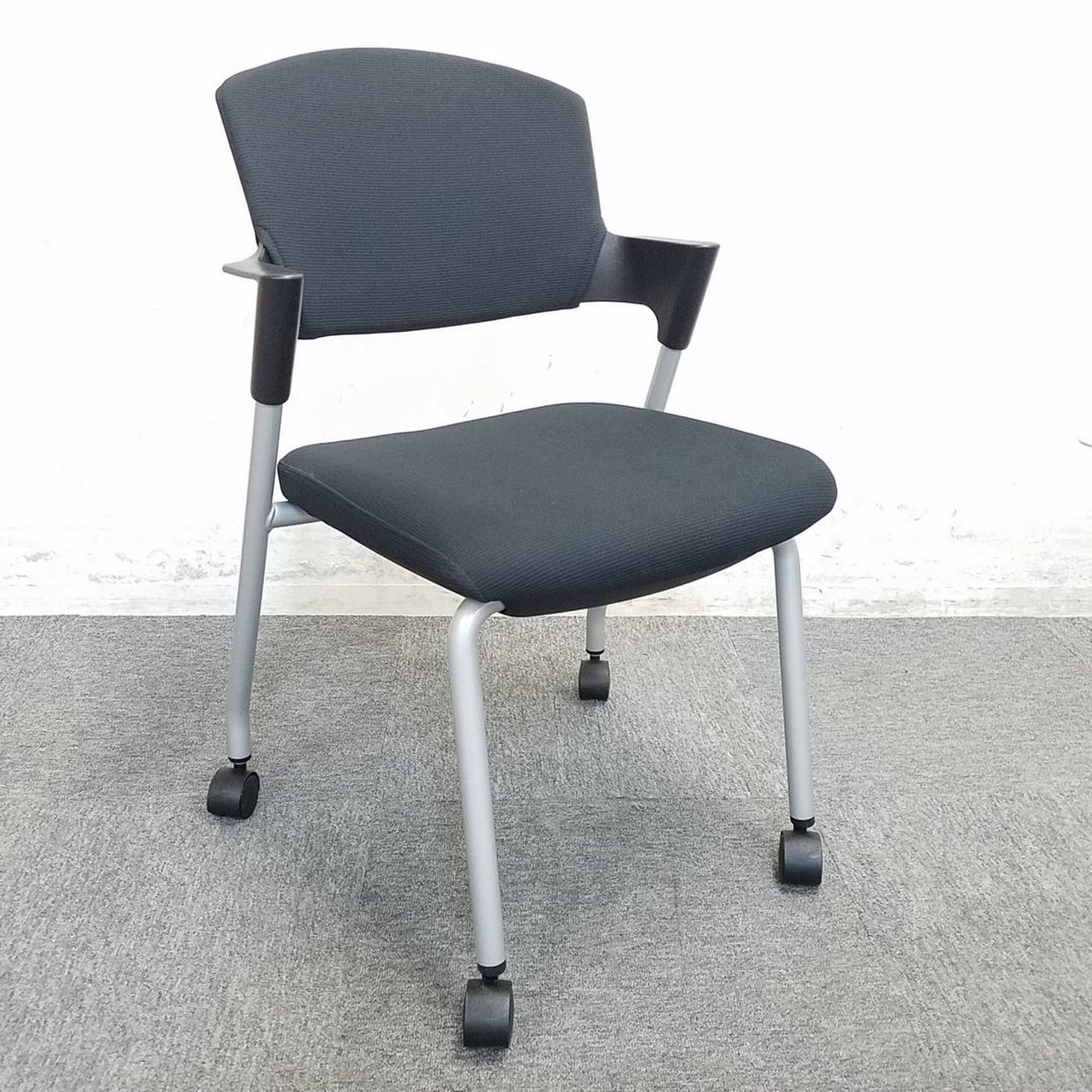 【シンプルスマートなスタッキングチェア!分厚いクッションで長時間でも快適な座り心地!】■スタッキングチェア 肘付ミーティングチェア ■固定肘 ■キャスター付 ■ブラック ■背面樹脂/コクヨ(KOKUYO/プロッティ