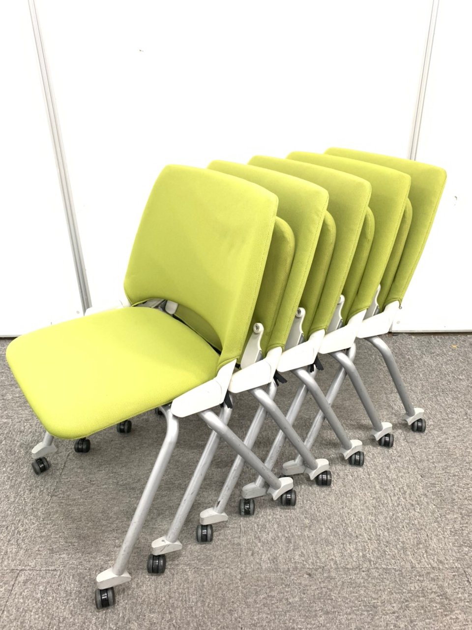 お買い得な5脚セット! 最小減のスペースで収まります! ウチダ製|FMシリーズ グリーン 【限定1セット】- 神戸・三宮店