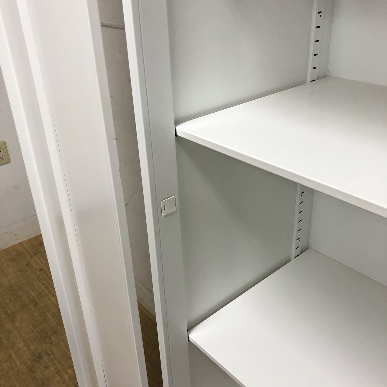 - 一部不具合ありそ引出の開閉不可、施錠不可、棚板無しといったの書庫の本来の効用を果たすための機能以外の一部が使用不可(例、扉、引出の開閉がしづらいなどがある。 )