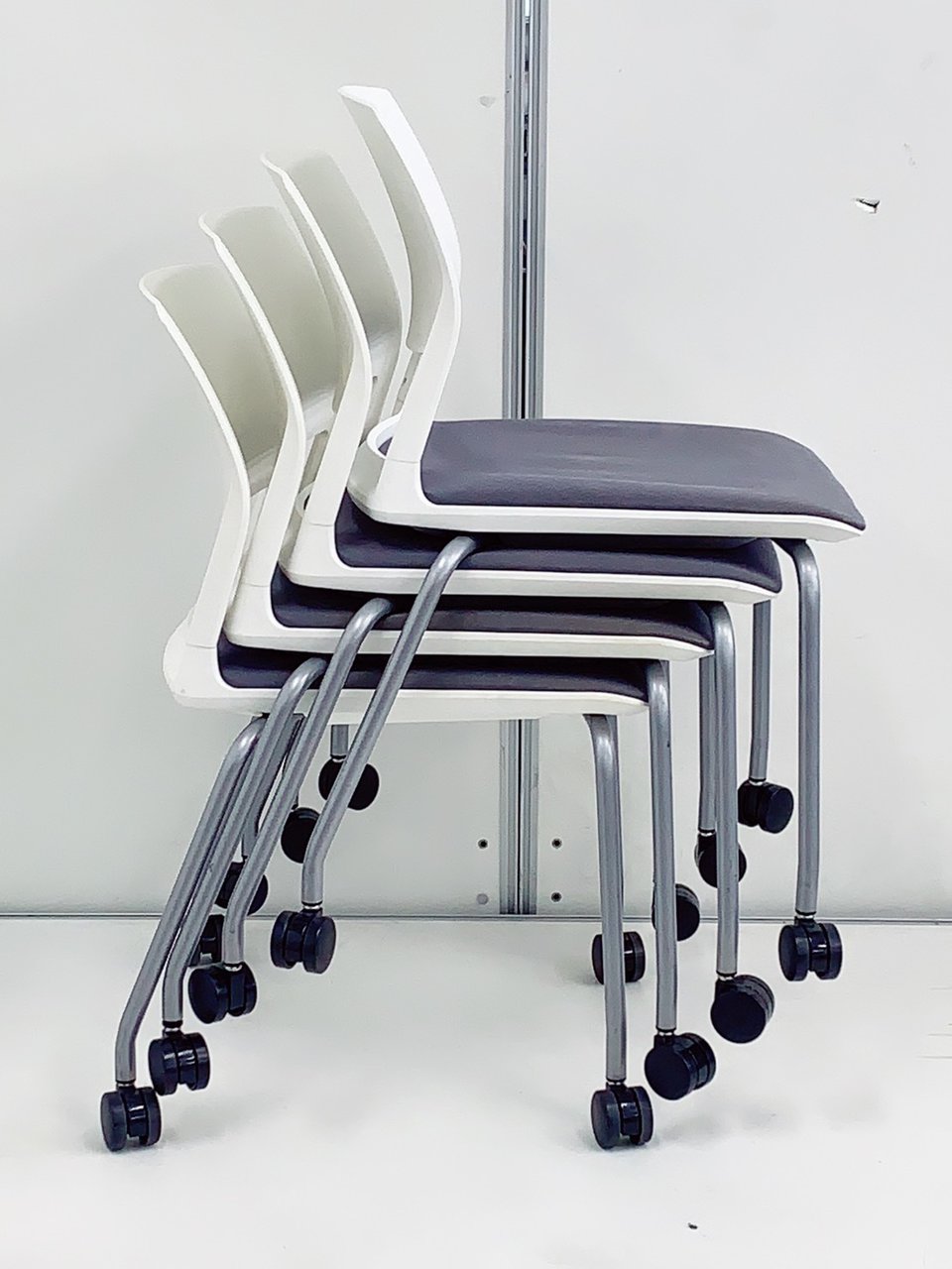【4脚セットでお得に!】シンプルなスタッキングチェア。キャスター付きで扱いやすい!- 埼玉本店