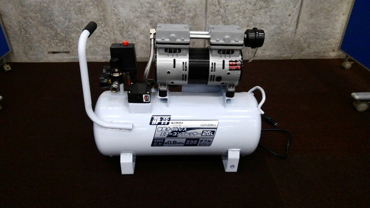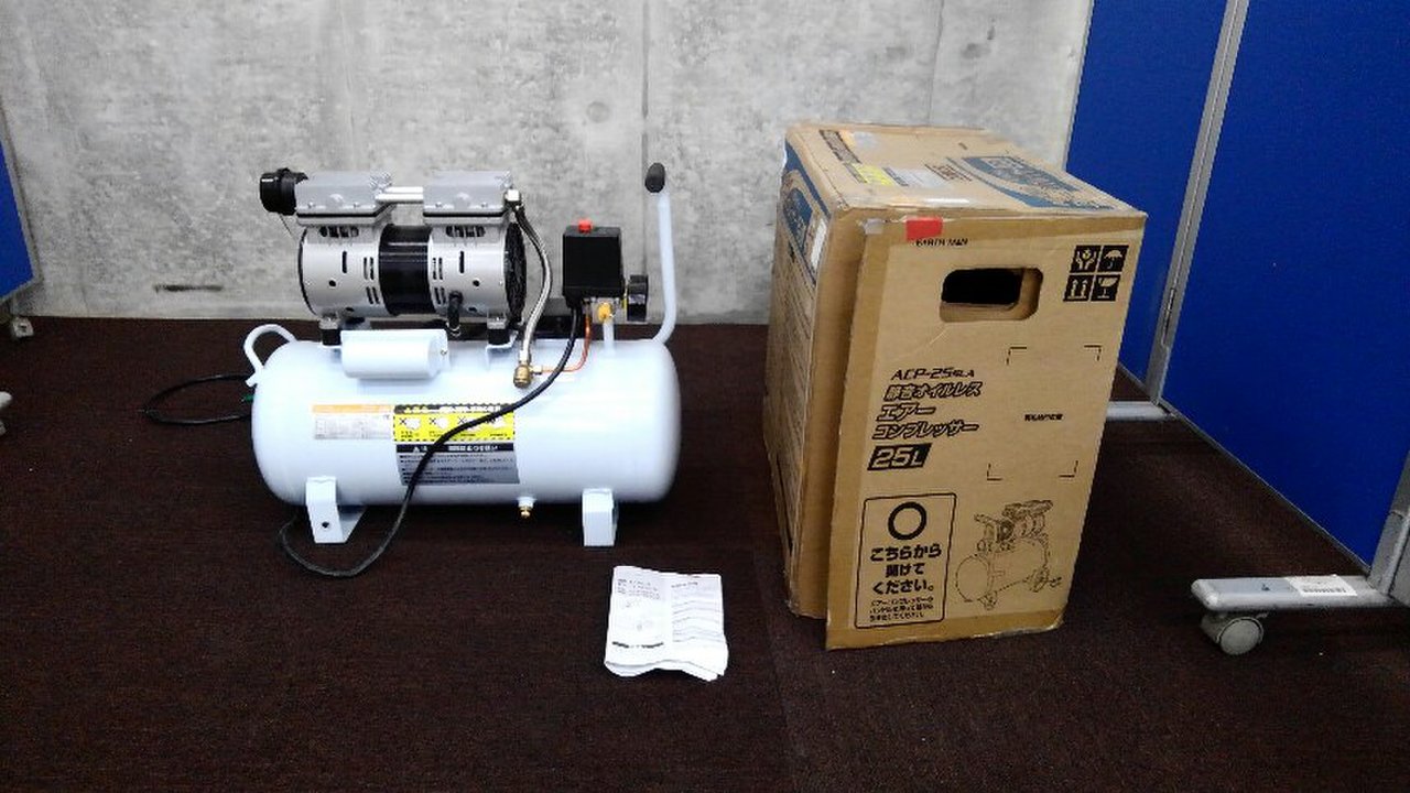 エアコンプレッサーが入荷入荷致しました!!① アースマン 高儀製 型番: ACP-25SLA 25L キャスター無し 動作確認済み!! ※マテハン本舗の中古商品は、千葉県柏市に在庫がございます。- マテハン本舗