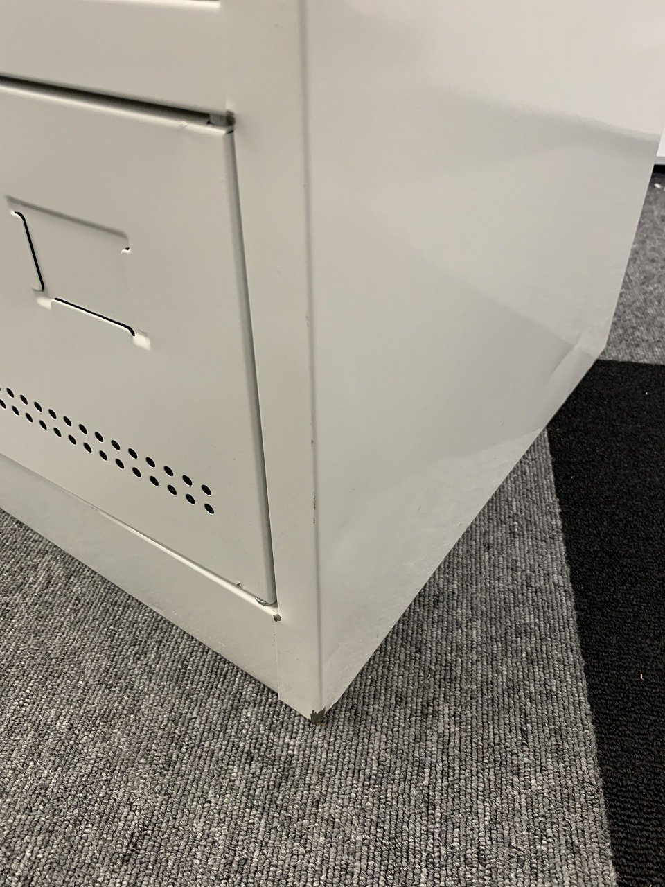 - 目立つ箇所複数あり深い傷・凹みが商品全体にある。(例、天板、正面、背部、サイド部分にある。)