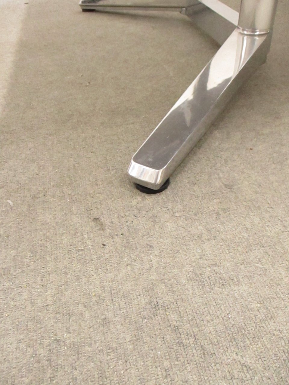 - 一部不具合あり天板歪み、アジャスター無し、キャスター使用不可ようなそのテーブルの本来の効用を果たすための機能以外の一部が使用不可な状態。(例、キャスターロッ ク機能使用不可、棚板無し等がある。)