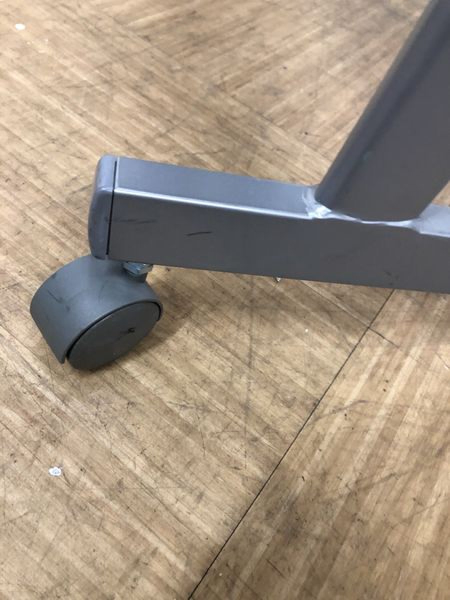 - 一部不具合あり天板歪み、アジャスター無し、キャスター使用不可ようなそのテーブルの本来の効用を果たすための機能以外の一部が使用不可な状態。(例、キャスターロッ ク機能使用不可、棚板無し等がある。)