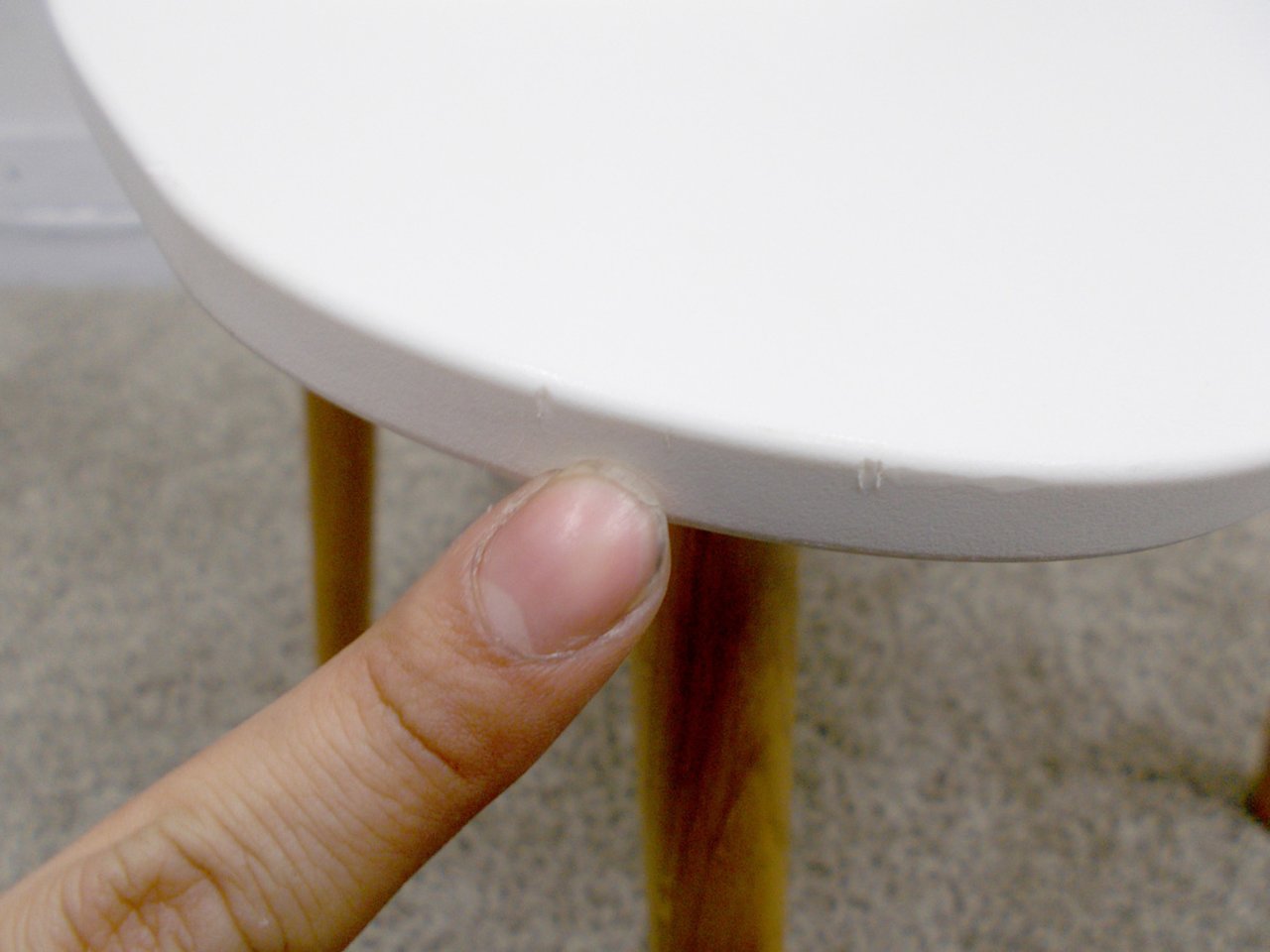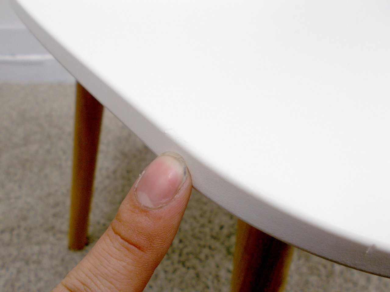 - かなり強い濃い黄ばみ・変色が商品全体にある。(例、座面・背もたれ、脚部等にある。)