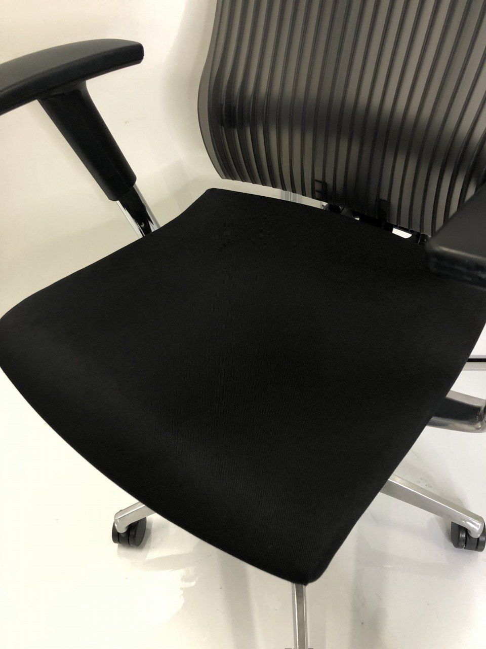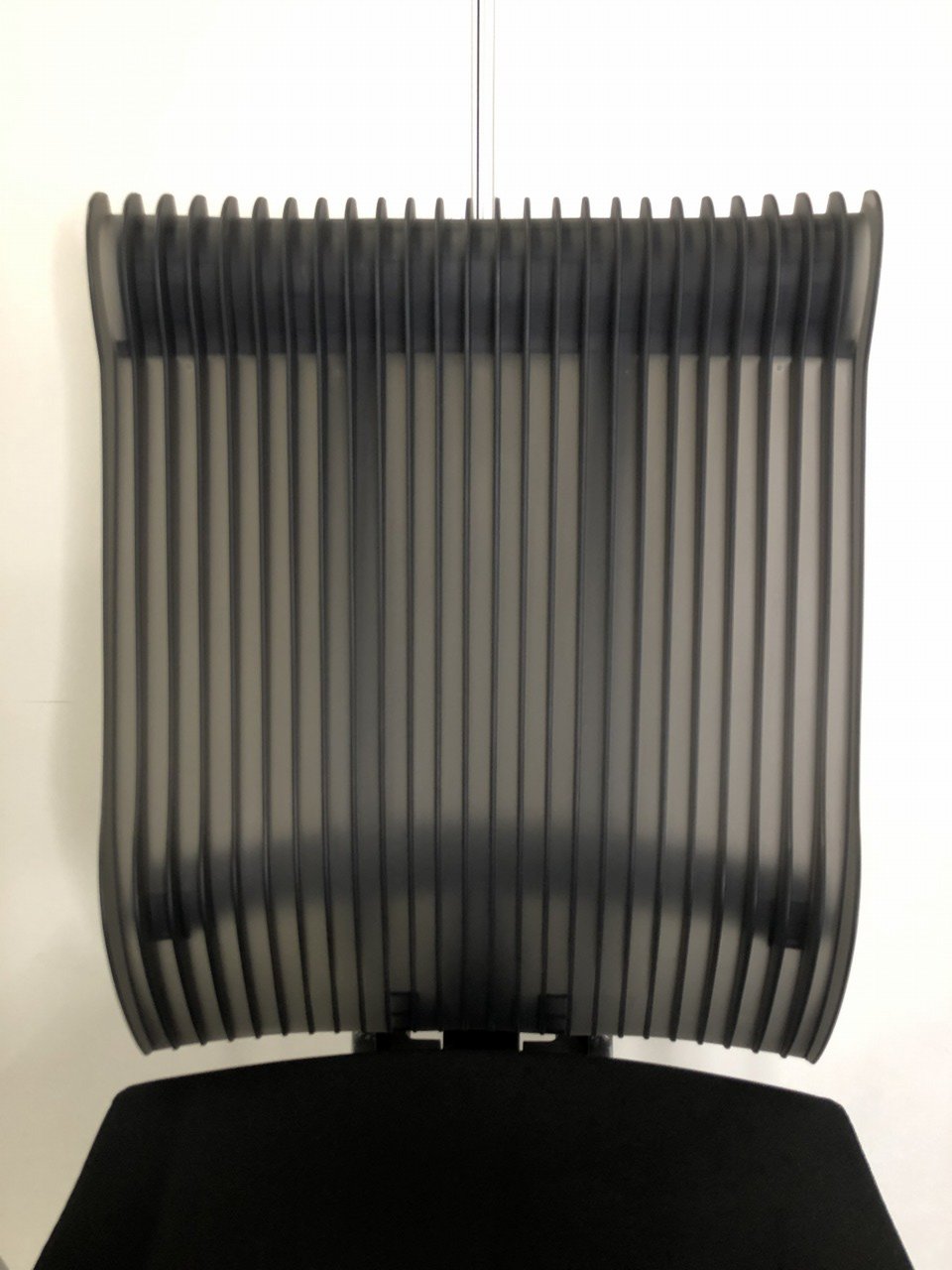 見た目は少し硬そうに見えるエラストマー素材ですが、座ってみると程よいしなり具合のやわらかな座り心地で、背中が痛くなるようなことはまるでありません。面ではなく線で支えることで、背面の通気性の良さは抜群です。