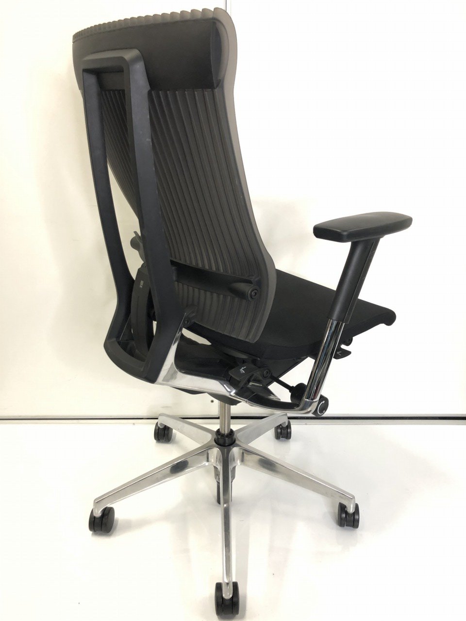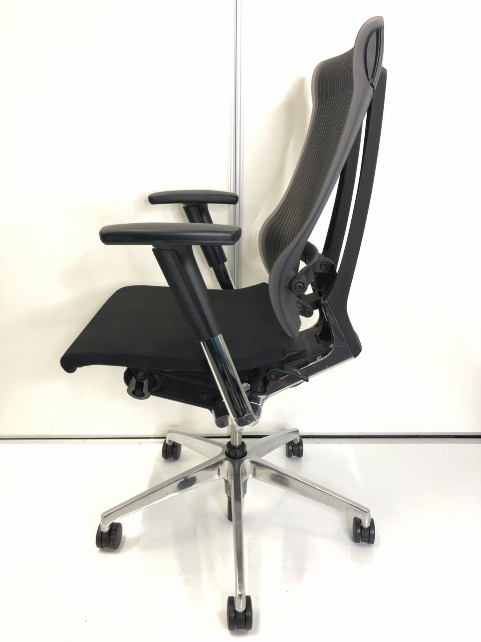 一番の特長は、着座時にチェアがピタっと体にフィットしてくれることです。 人がチェアの座り心地を調節するのではなく、チェアが人に合わせて動くのです!着座時に座面が沈み込みながら後方へスライドし、それと同時に背もたれの腰部分が前にせり出し、「ずっと座っていたくなる」と言われるほどの座り心地に調節してくれます。それを実現しているのが、A.L.S(アクティブ・ランバー・サポート)機構とP.S.S(パッシブ・スライド・シート)機構です。 さらに、背もたれにかかる体圧を徹底的に分析して作られた絶妙なカーブが、常に腰をサポートしつつ背骨のラインに沿ってくれます。