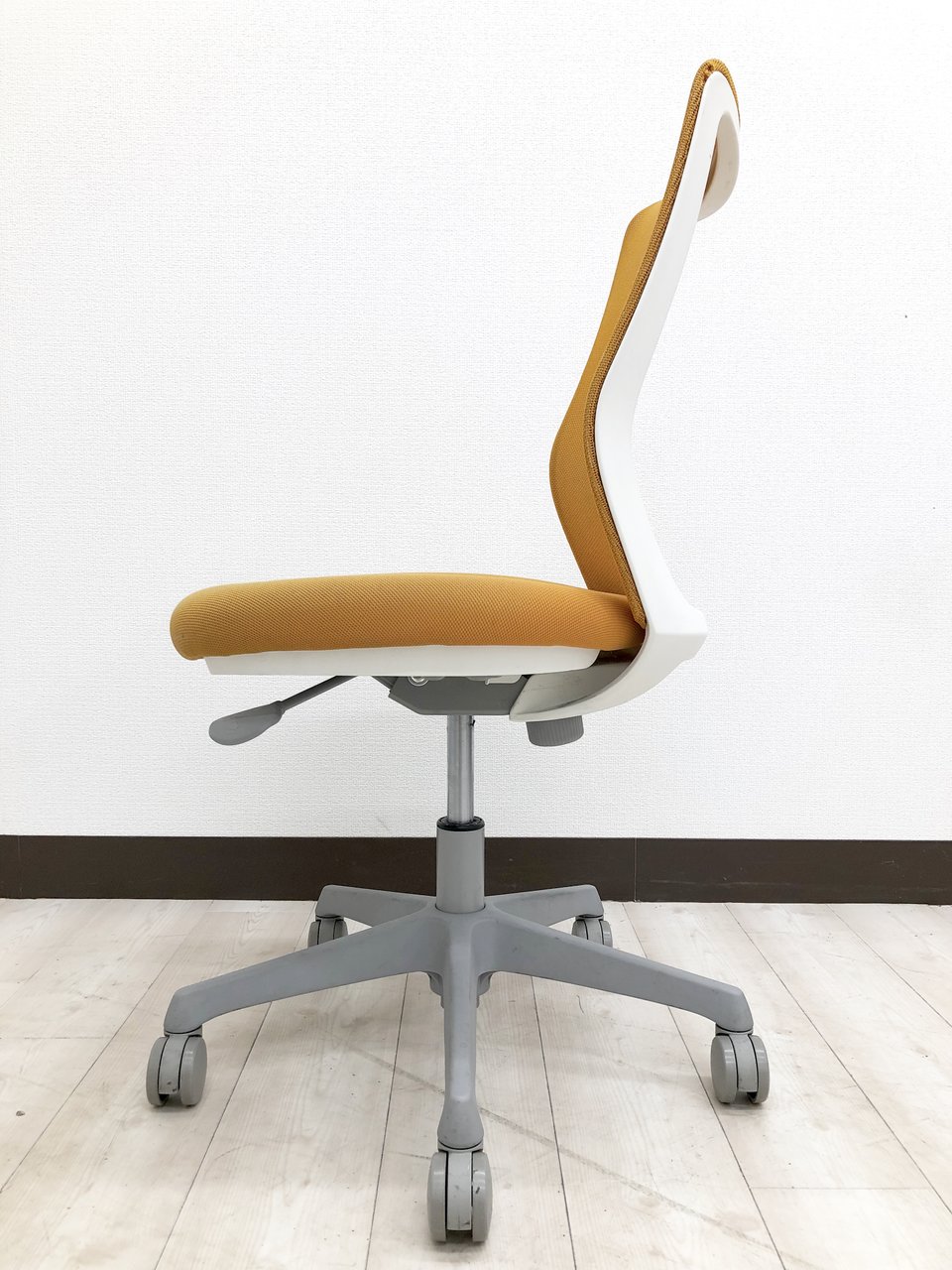 座り心地では、座面に高級チェアで使われている異硬度クッションが採用されており、快適です。硬異度クッションは、座面の後方は体重をしっかり支えるために硬め、前方は腿裏の血流を圧迫しないように柔らかめとなっており、長時間の着座を快適しサポートしてくれます。背もたれはS字になっていて背骨に沿ってくれるので、お客様からも「あれ、結構いいね〜。」と驚きのお声を頂くことが多いです。"