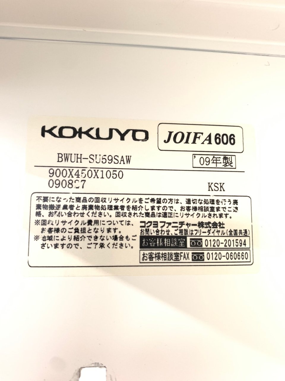 - 一部不具合ありそ引出の開閉不可、施錠不可、棚板無しといったの書庫の本来の効用を果たすための機能以外の一部が使用不可(例、扉、引出の開閉がしづらいなどがある。 )