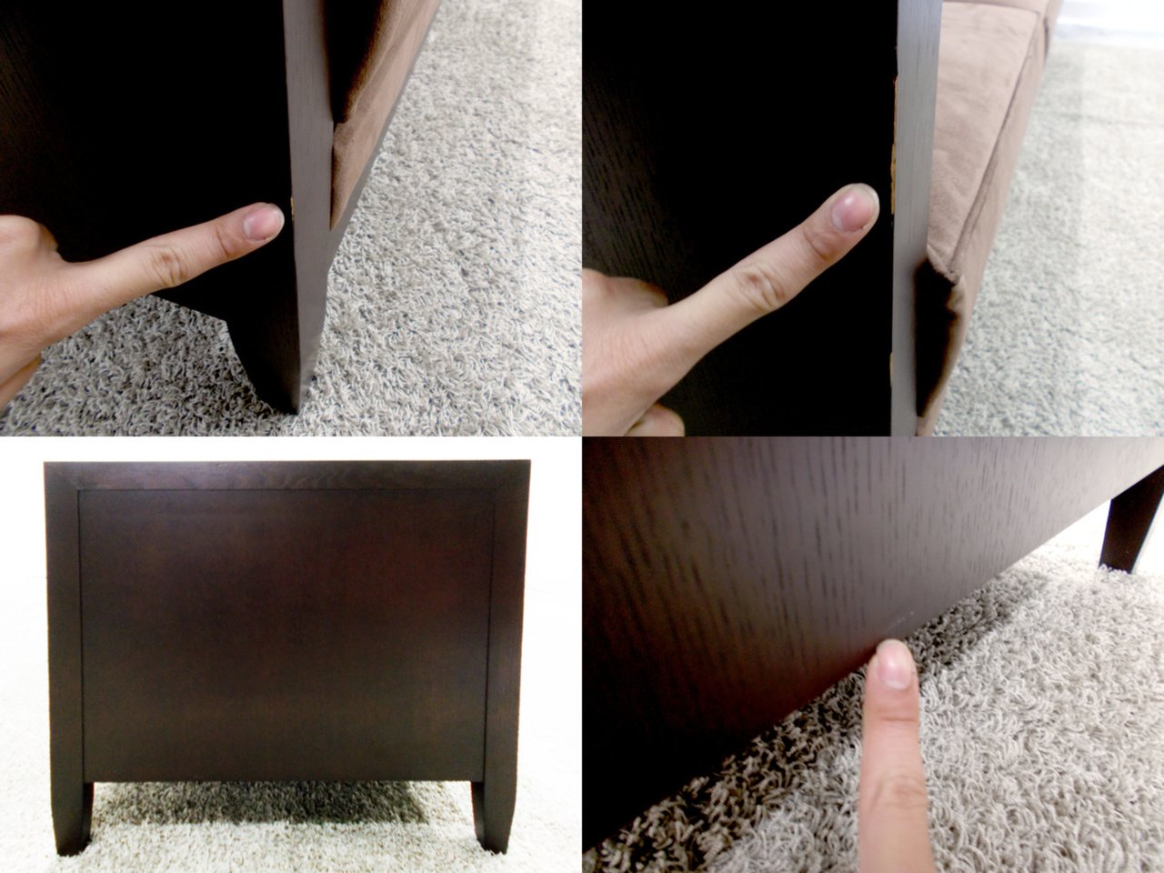 - 若干あり黄ばみ・変色が一部ある。(例:三人用ソファ、二人用ソファ、一人用ソファの場合、背もたれ、肘かけ、座面等、センターテーブルの場合、天板、脚にある。)