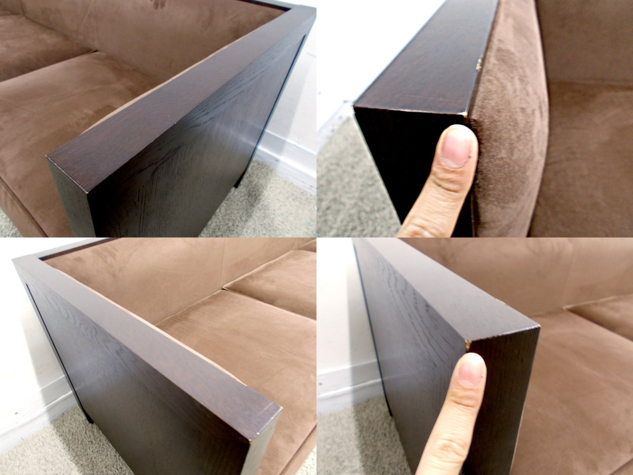 - かなり強い濃い黄ばみ・変色が商品全体にある。 (例:三人用ソファ、二人用ソファ、一人用ソファの場合、背もたれ、肘かけ、座面等、センターテーブルの場合、天板、 脚にある。)
