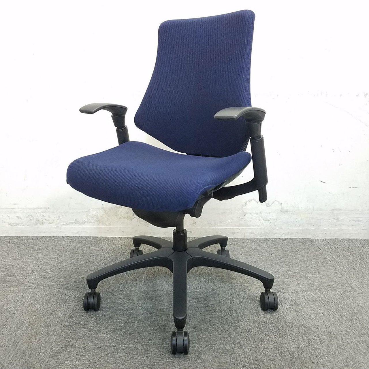 【包み込まれるフィット感!】 ■イトーキ製 エフチェア 肘付 ネイビーブルー ■デスクワークの疲労を軽減!